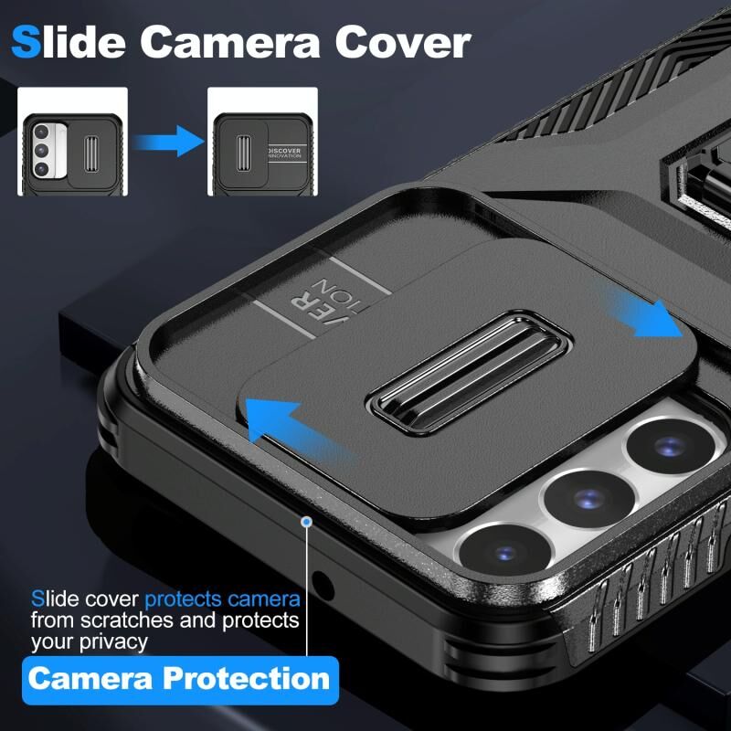 Για Samsung Galaxy S22 5G Συρόμενη θήκη τηλεφώνου με κάλυμμα κάμερας (Μαύρο)