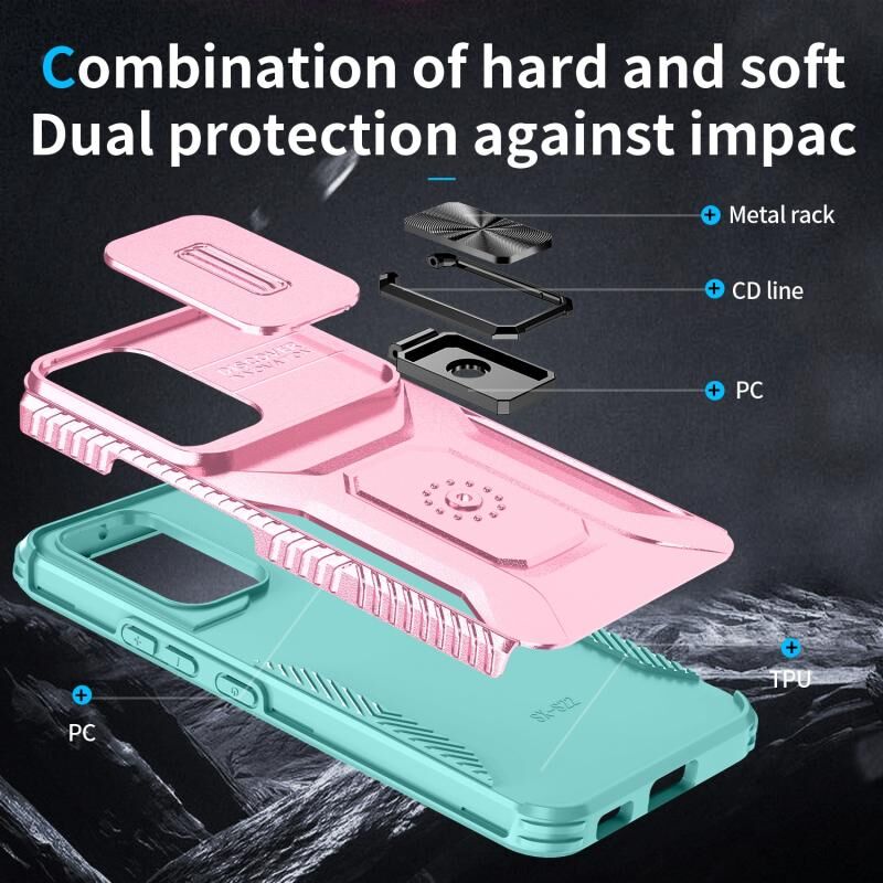 Για Samsung Galaxy S22 5G Συρόμενη θήκη τηλεφώνου Camshield Holder (ροζ + γκρι πράσινο)