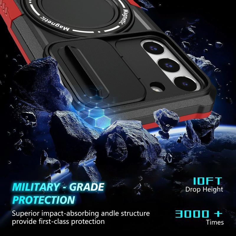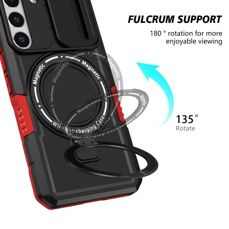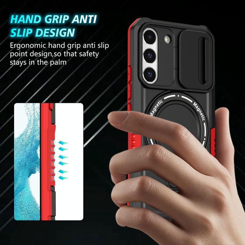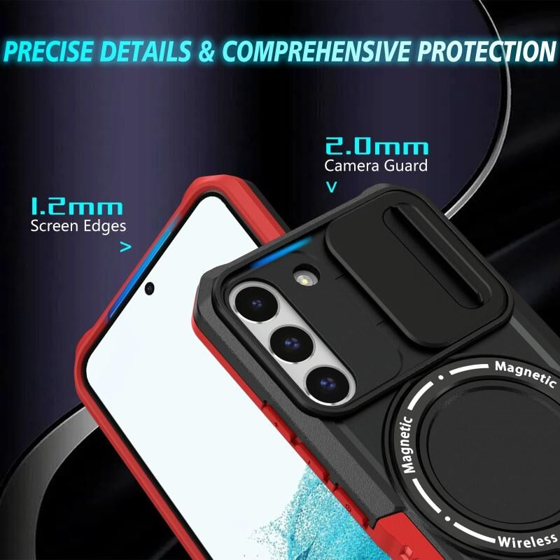 For Samsung Galaxy S22 5G Sliding Camshield Magsafe Holder TPU Hybrid PC Phone Case(Black Red)