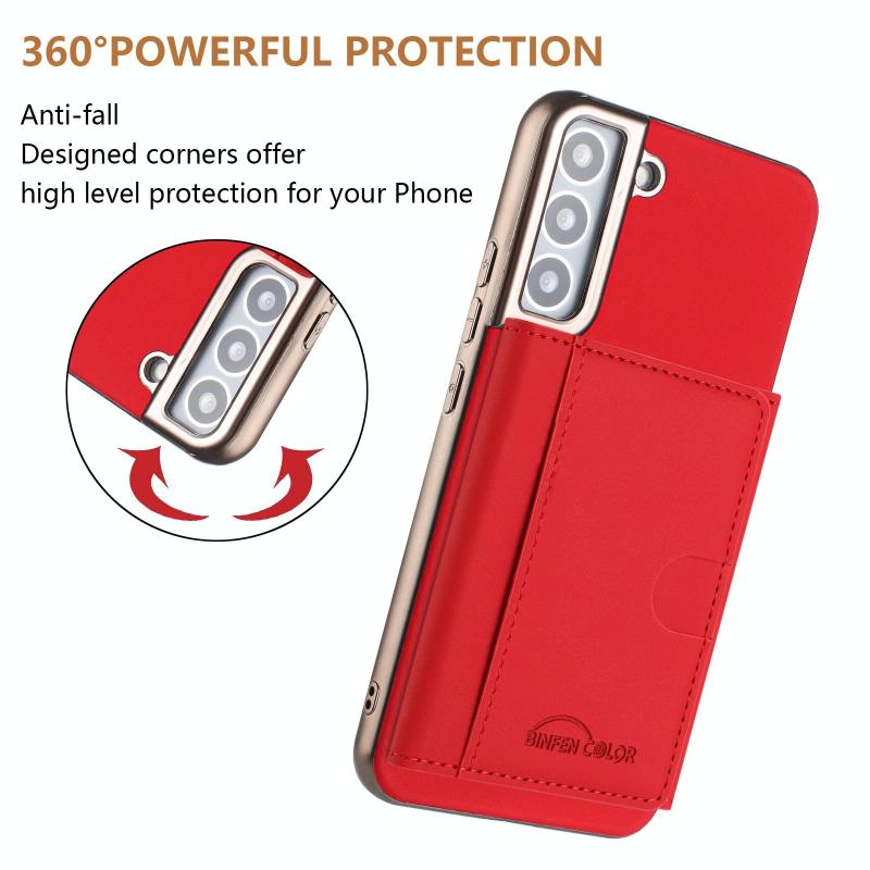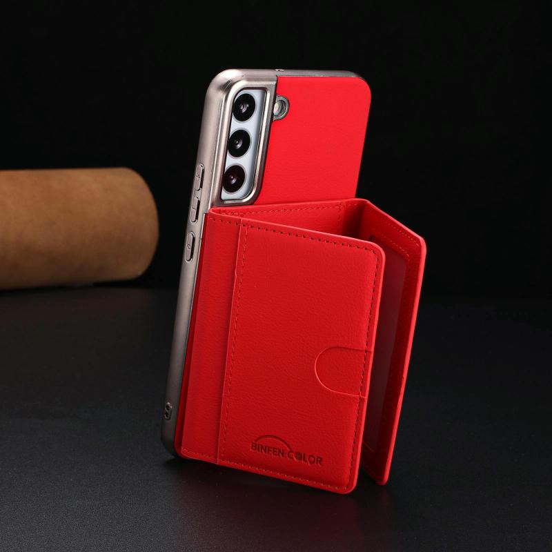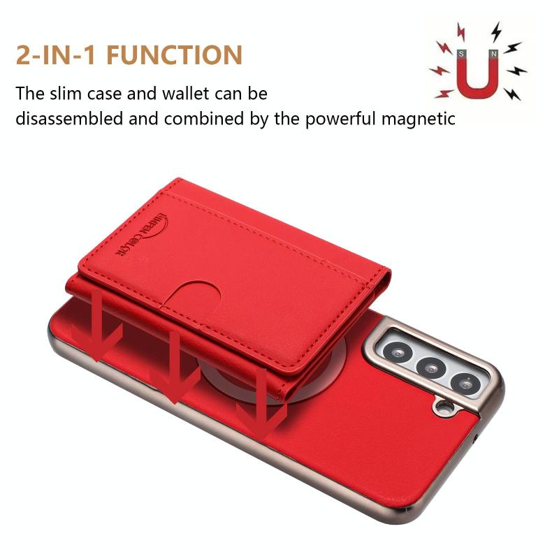 For Samsung Galaxy S22+ 5G Solid Color Horizontal Magnetic Card Bag RFID MagSafe Phone Case(Red)