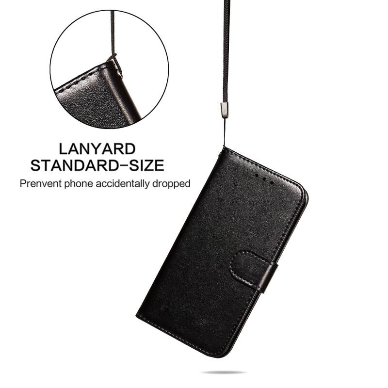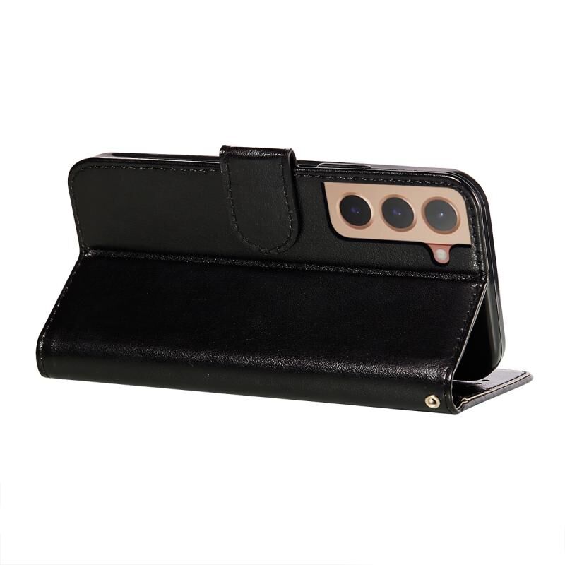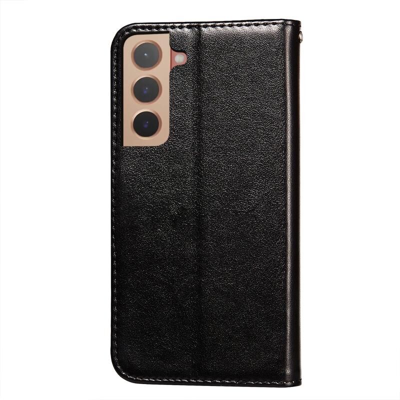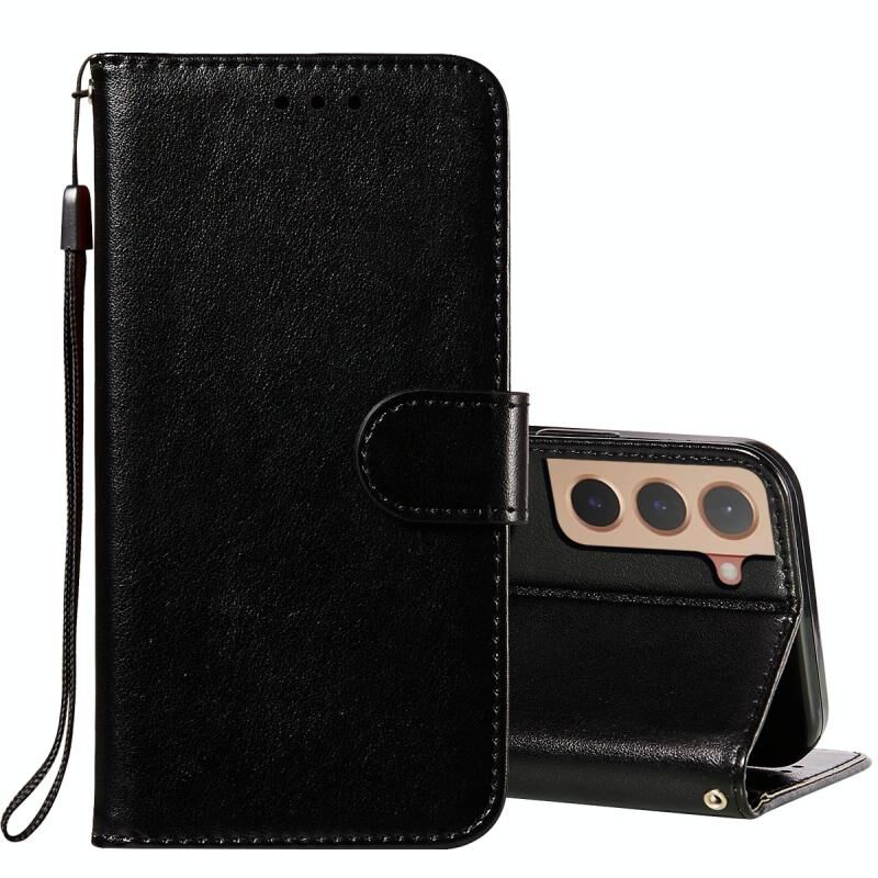 Για Samsung Galaxy S22 5G Αμιγές χρώμα δερμάτινη θήκη τηλεφώνου με θήκη & υποδοχές για κάρτες & πορτοφόλι & κορδόνι (Μαύρο)
