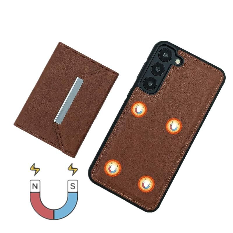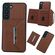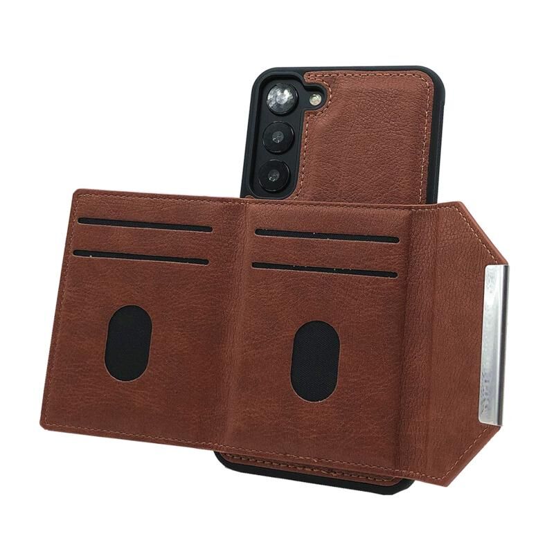 Για Samsung Galaxy S22 + 5G στερεό χρώμα μέταλλο πόρπη κάρτα υποδοχές τσάντα υπόθεση τηλεφώνου (καφέ)