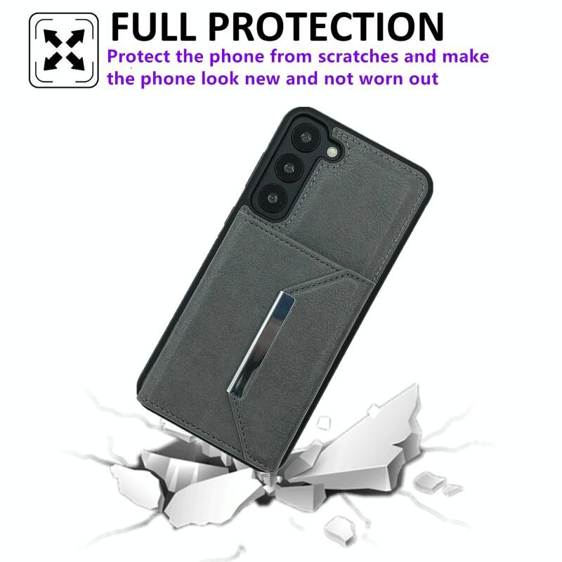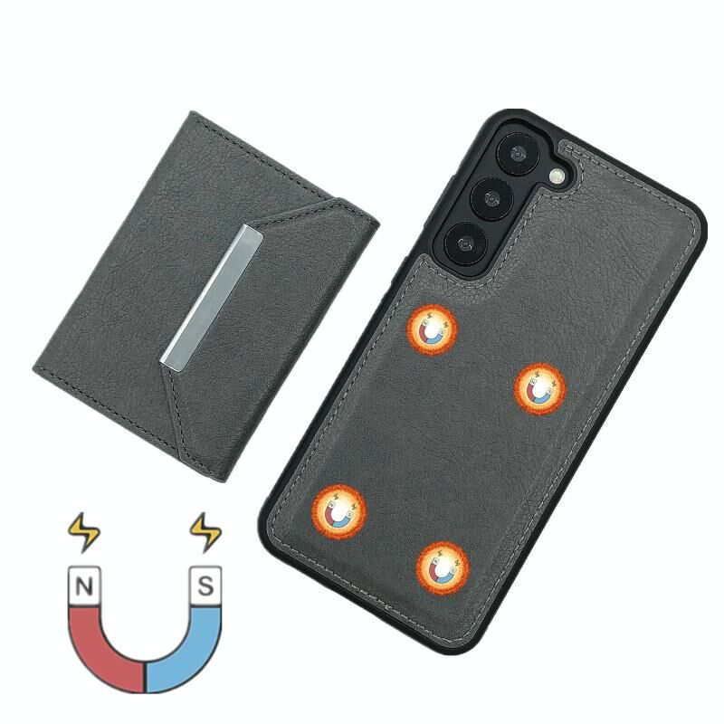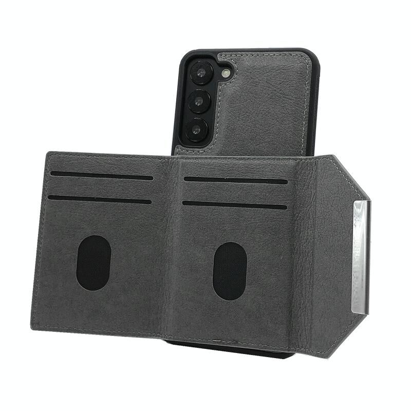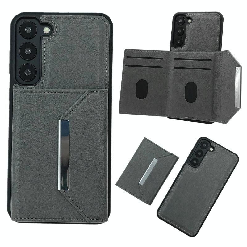 Για Samsung Galaxy S22 5G Αμιγές χρώμα μέταλλο πόρπη κάρτα υποδοχές τσάντα υπόθεση τηλεφώνου (γκρι)