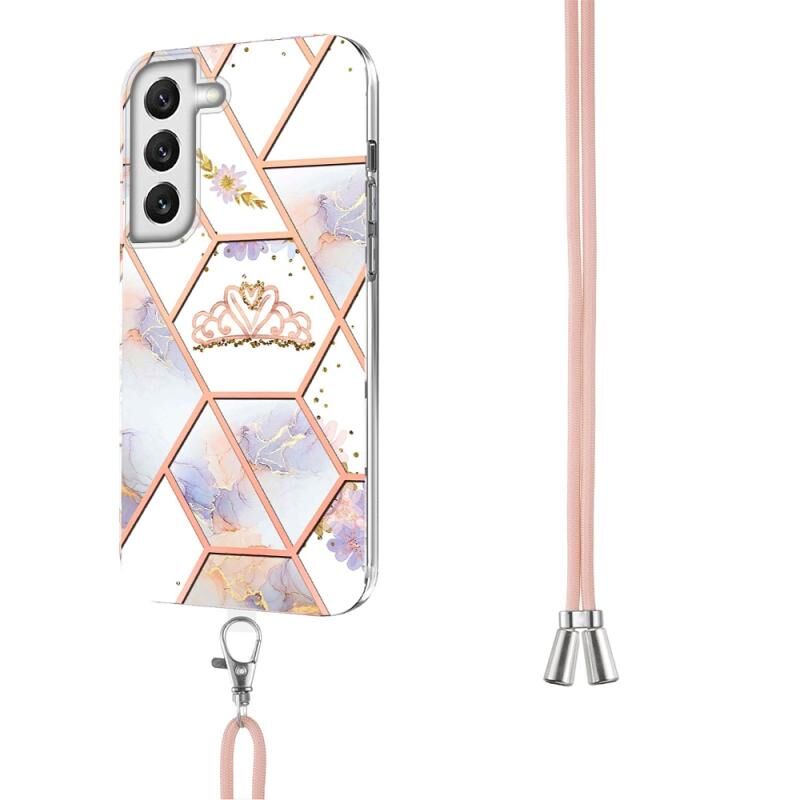 Θήκη τηλεφώνου TPU με σχέδιο μαρμάρου και λουλουδιών σε στυλ patchwork για Samsung Galaxy S22 5G με κορδόνι (Imperial Crown)