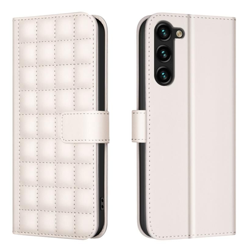 For Samsung Galaxy S22+ 5G Square Texture Leather Phone Case(Beige)