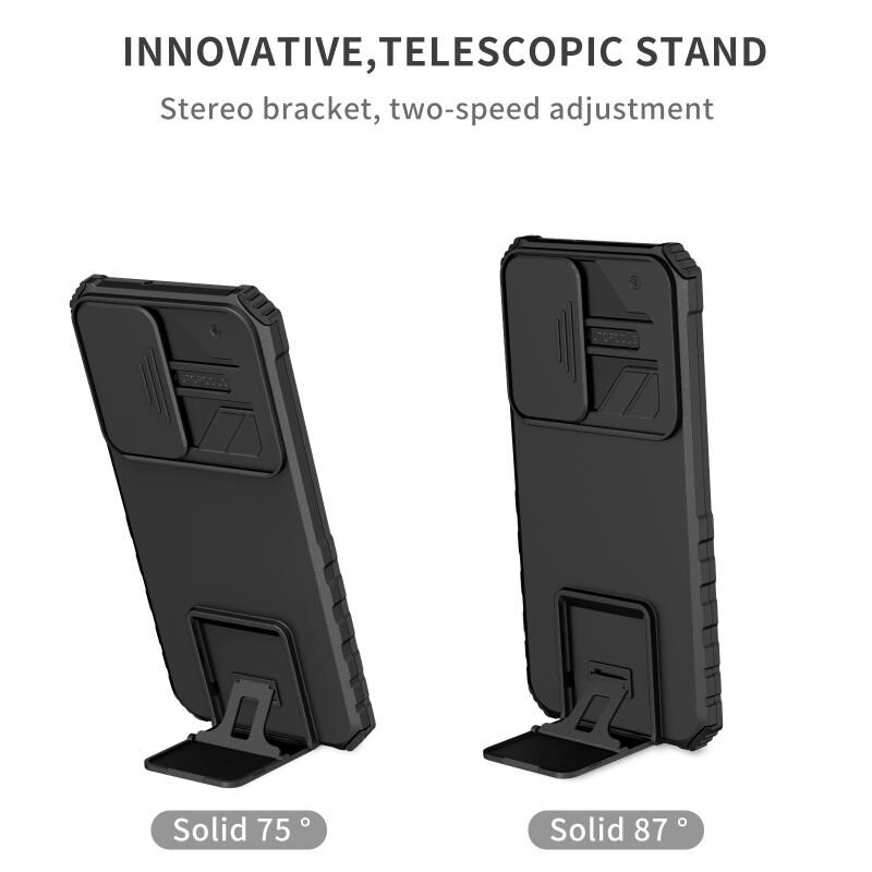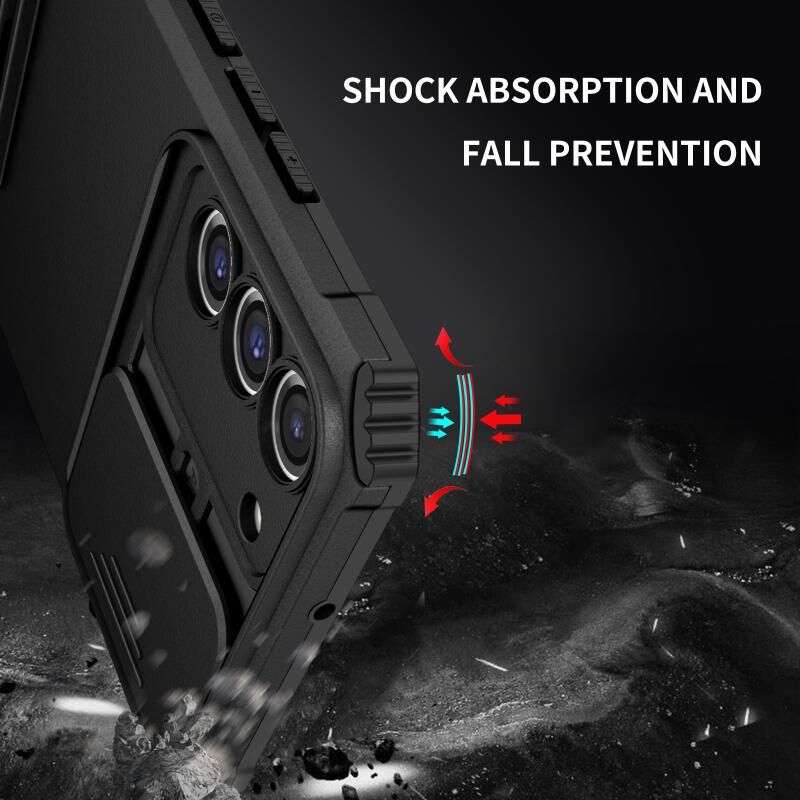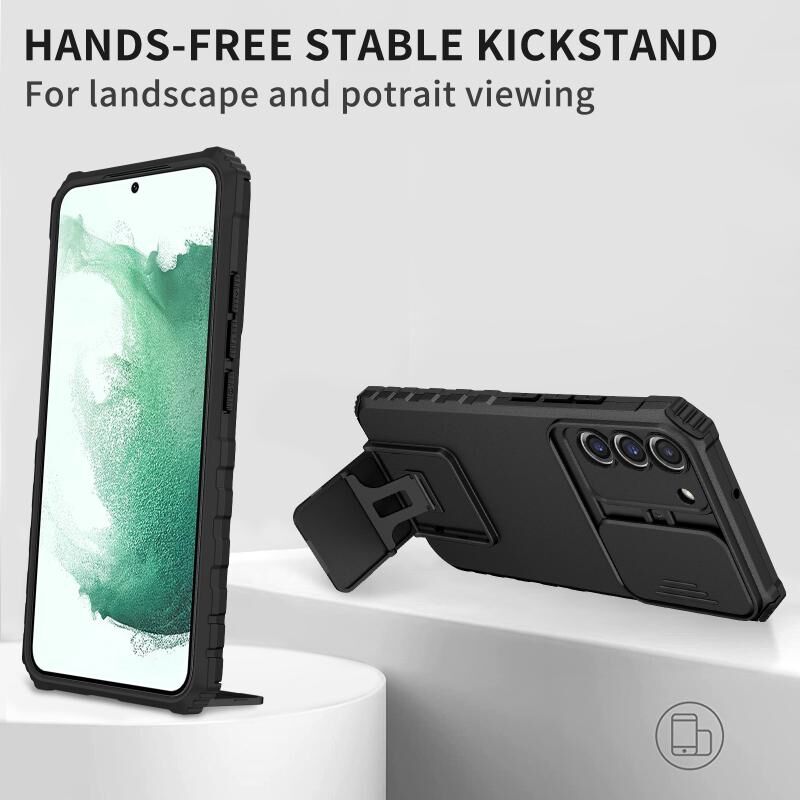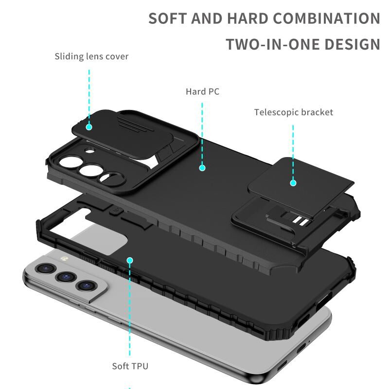 Για Samsung Galaxy S22+ 5G Στερεοσκοπικό κάτοχος συρόμενη Camshield θήκη τηλεφώνου (Μαύρο)