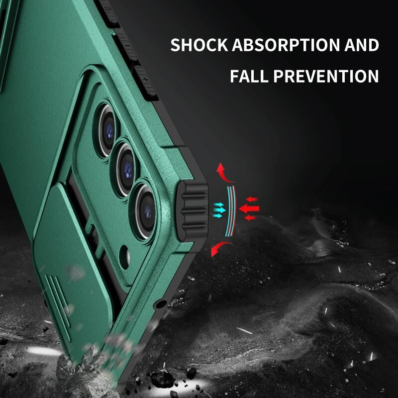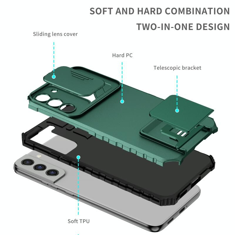 Για Samsung Galaxy S22+ 5G Στερεοσκοπική θήκη τηλεφώνου με συρόμενη θήκη Camshield (πράσινο)