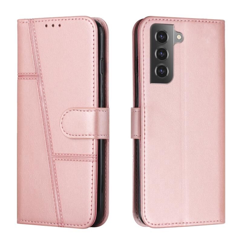 Για Samsung Galaxy S22 + 5G ραφή μοσχάρι υφή πόρπη δερμάτινη θήκη τηλεφώνου (ροζ)