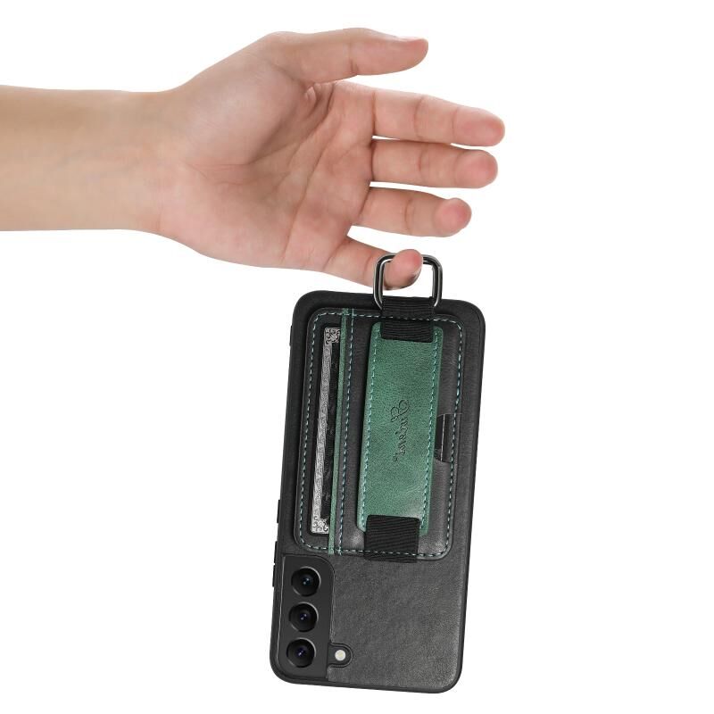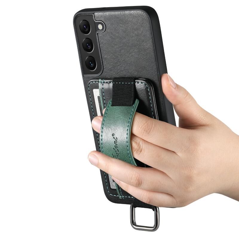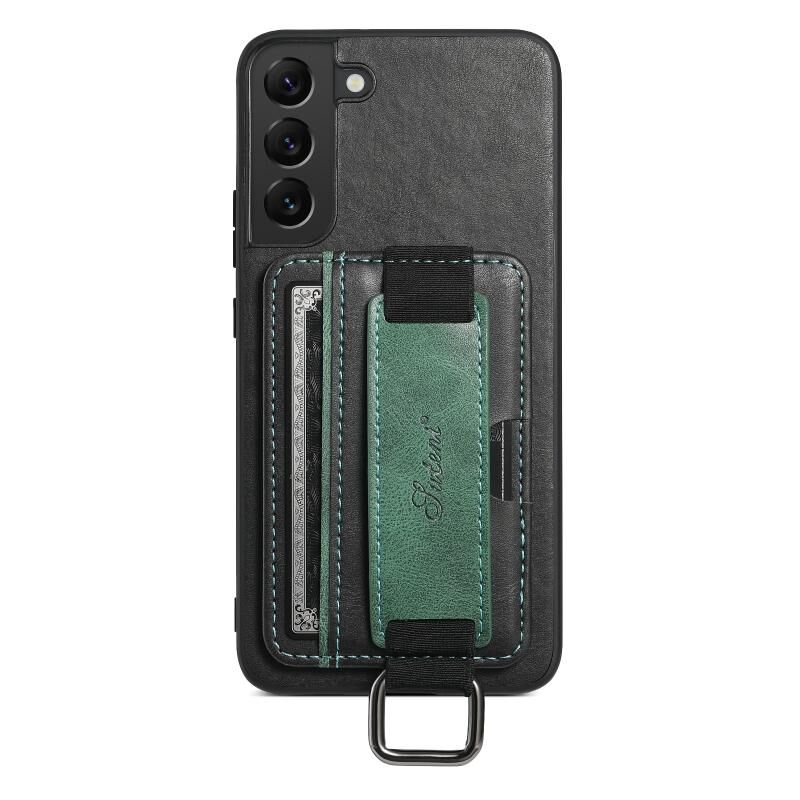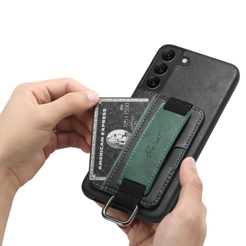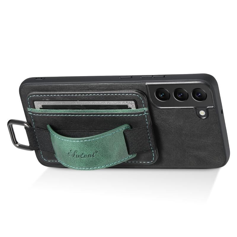 Θήκη κινητού τηλεφώνου Samsung Galaxy S22 5G Suteni H13 με κάρτες, λουρί καρπού και κατασκευή από PU (Μαύρο) (Suteni)