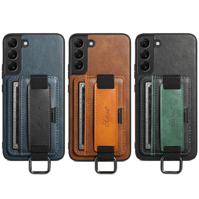 Θήκη κινητού τηλεφώνου Samsung Galaxy S22+ 5G Suteni H13 με κάρτες, λουρί καρπού και κατασκευή από PU δέρμα (Καφέ) (Suteni)