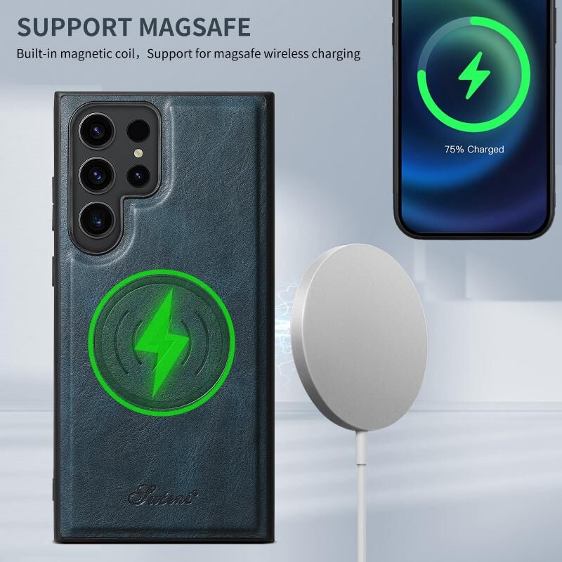 For Samsung Galaxy S22+ 5G Suteni H17 Oil Eax Leather MagSafe Detachable Wallet Phone Case(Blue) (Suteni)