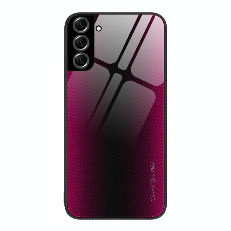 For Samsung Galaxy S22+ 5G Texture Gradient Glass TPU Phone Case(Rose Red)