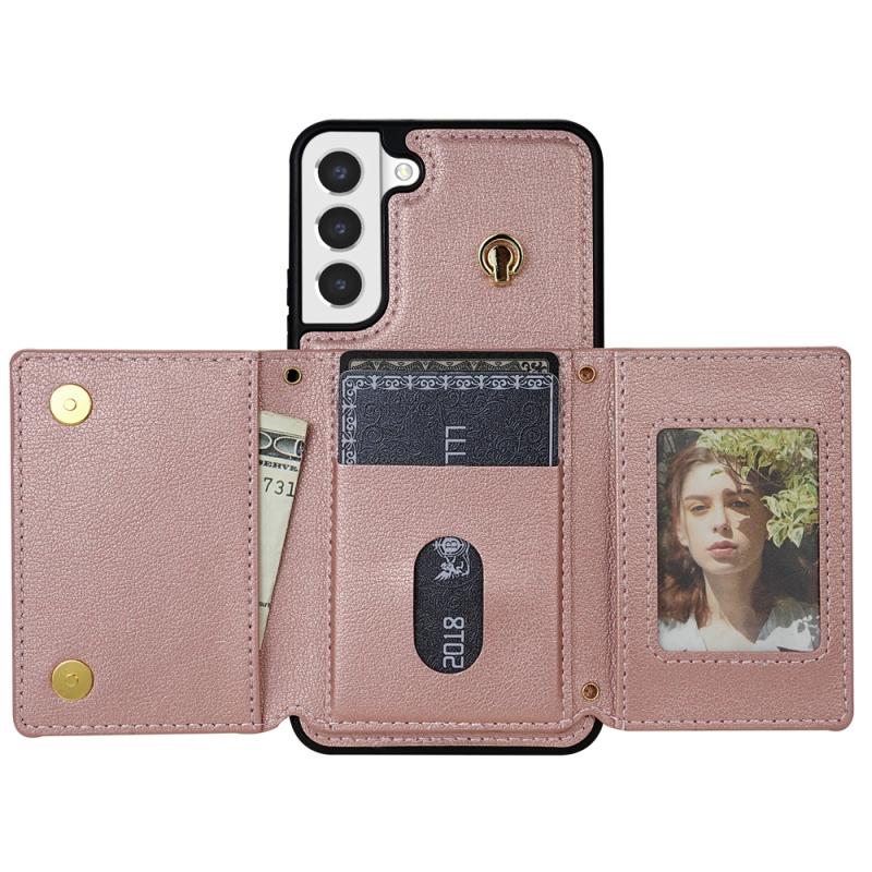 Θήκη Samsung Galaxy S22 5G με Τρίπτυχο Θήκη Κάρτας & Λουρί (Ροζ Χρυσό)