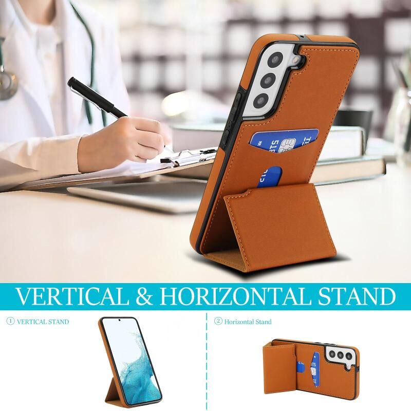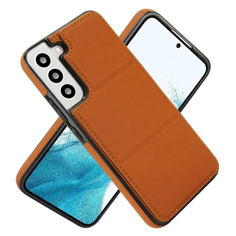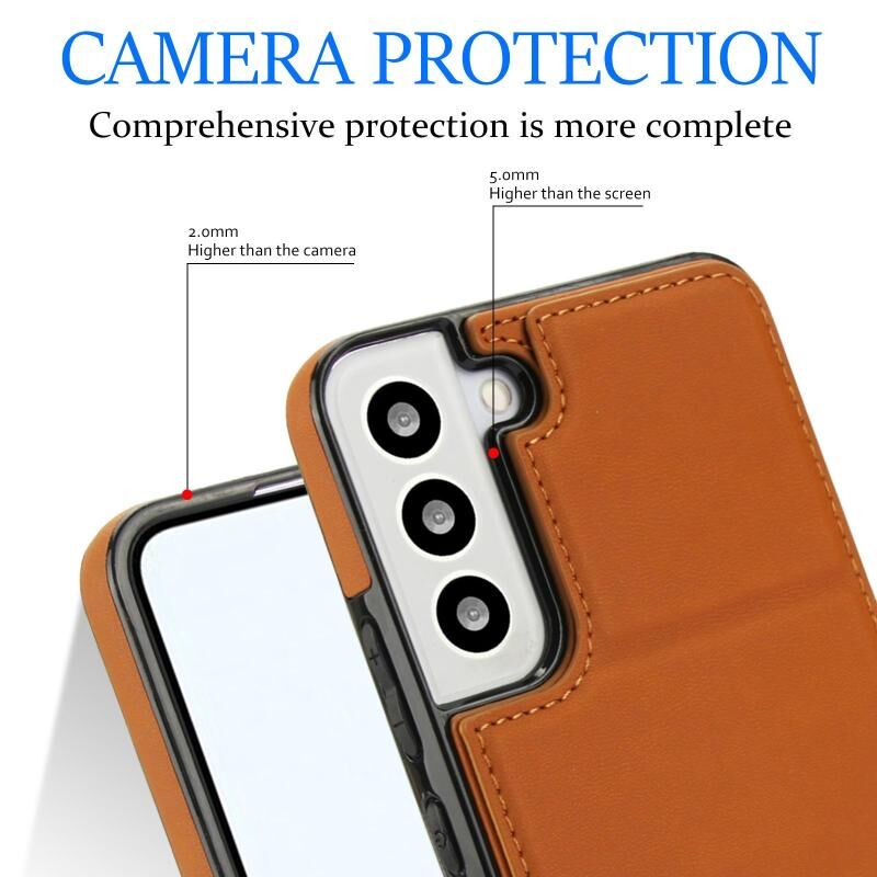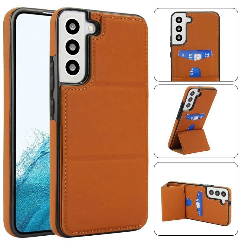 For Samsung Galaxy S22 5G Tri-fold Holder Leather Phone Case with Card Slot(Brown)