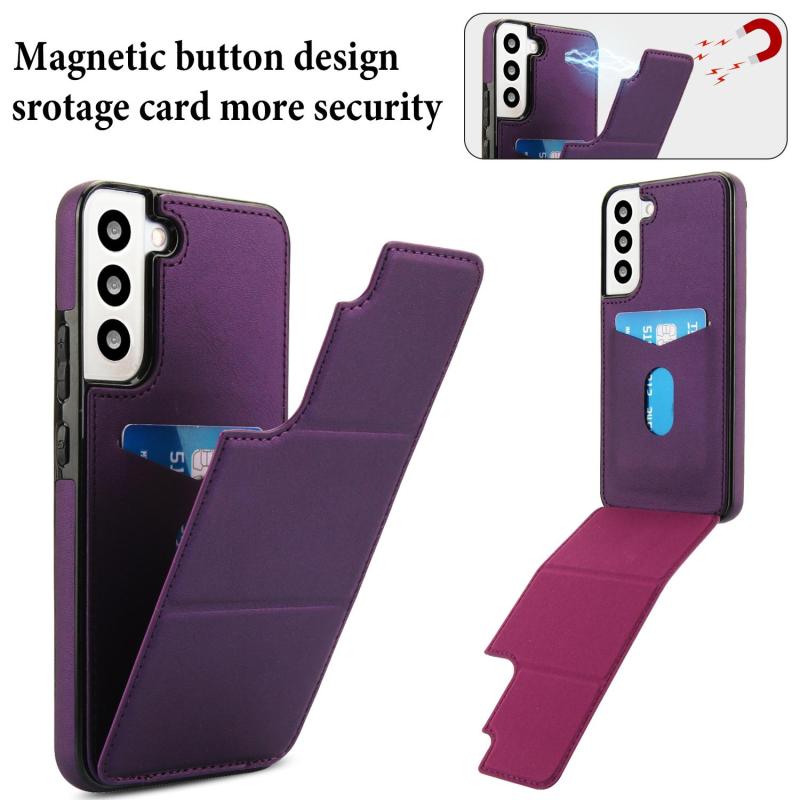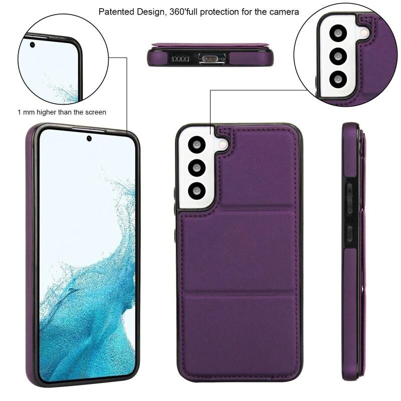 For Samsung Galaxy S22 5G Tri-fold Holder Leather Phone Case with Card Slot(Dark Purple)