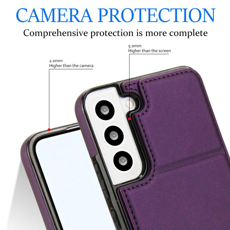 For Samsung Galaxy S22+ 5G Tri-fold Holder Leather Phone Case with Card Slot(Dark Purple)