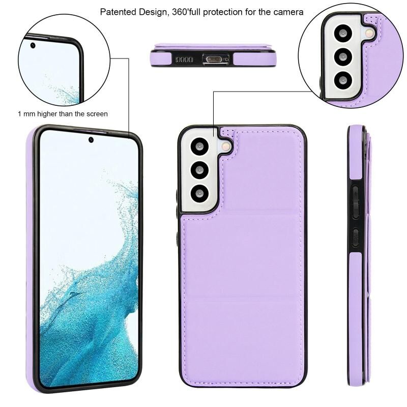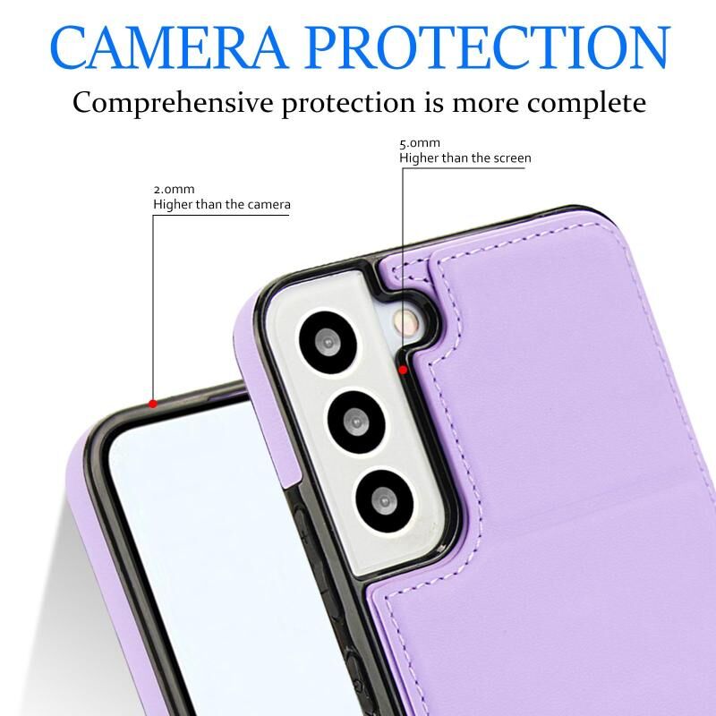 For Samsung Galaxy S22 5G Tri-fold Holder Leather Phone Case with Card Slot(Light Purple)