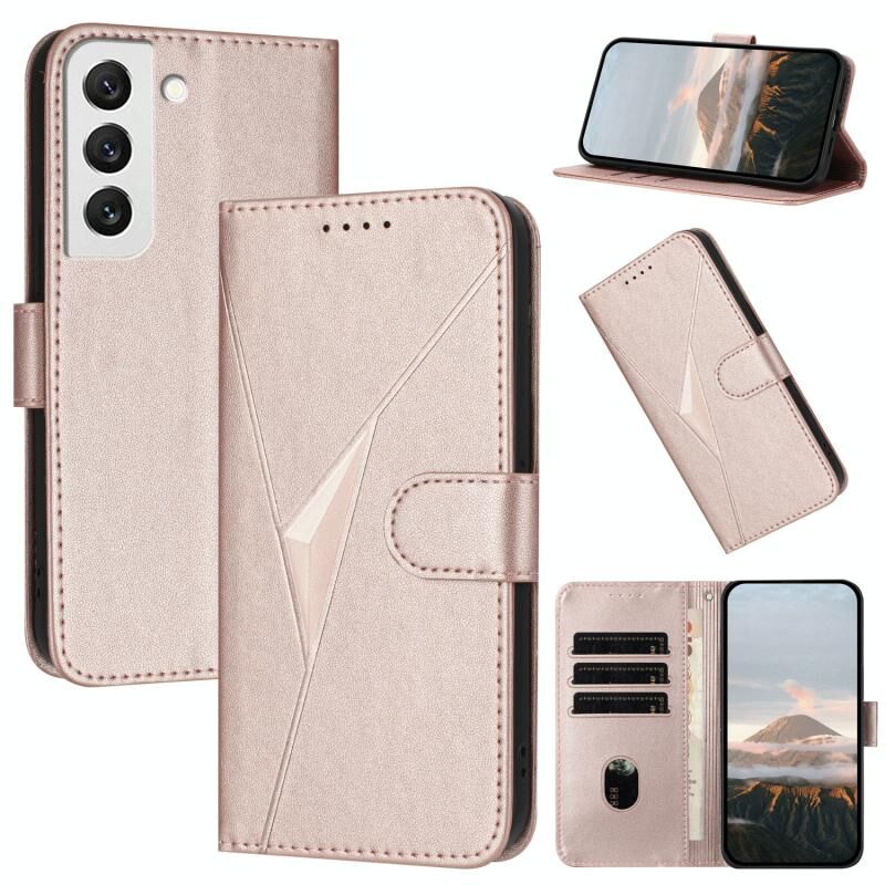 Για Samsung Galaxy S22 5G Τρίγωνο μοτίβο αγκράφα κούμπωμα δερμάτινη θήκη τηλεφώνου (Rose Gold)