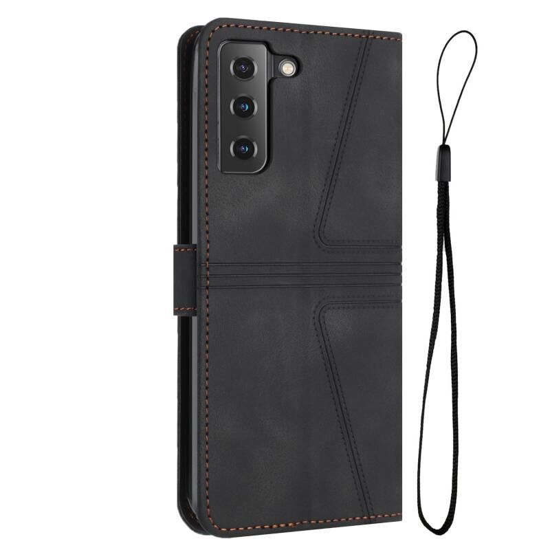 Για Samsung Galaxy S22+ 5G Τρίγωνο στερεό χρώμα δερμάτινη θήκη τηλεφώνου (μαύρο)