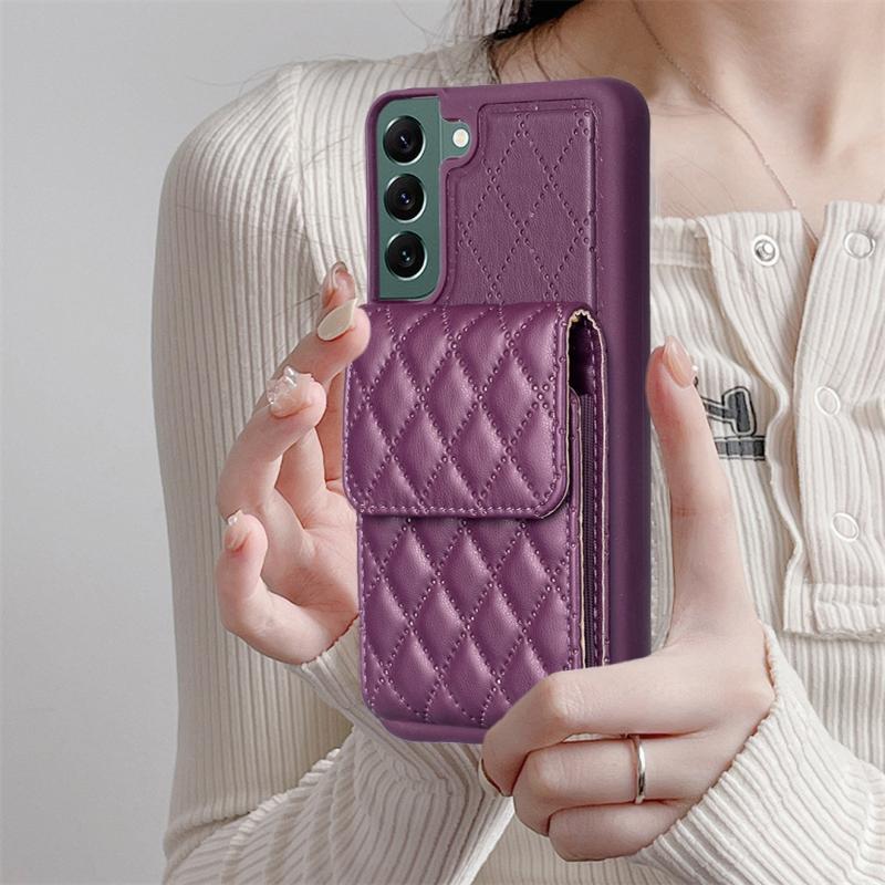 Θήκη τηλεφώνου Samsung Galaxy S22+ 5G κάθετη πορτοφόλι δερμάτινη ρόμβος (Μαύρο)