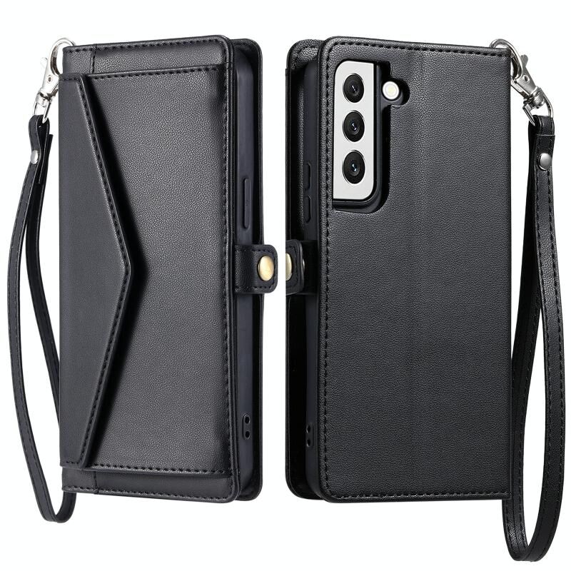 Για Samsung Galaxy S22 5G Πορτοφόλι Multi-card Slot Δερμάτινη θήκη τηλεφώνου με κορδόνι (Μαύρο)
