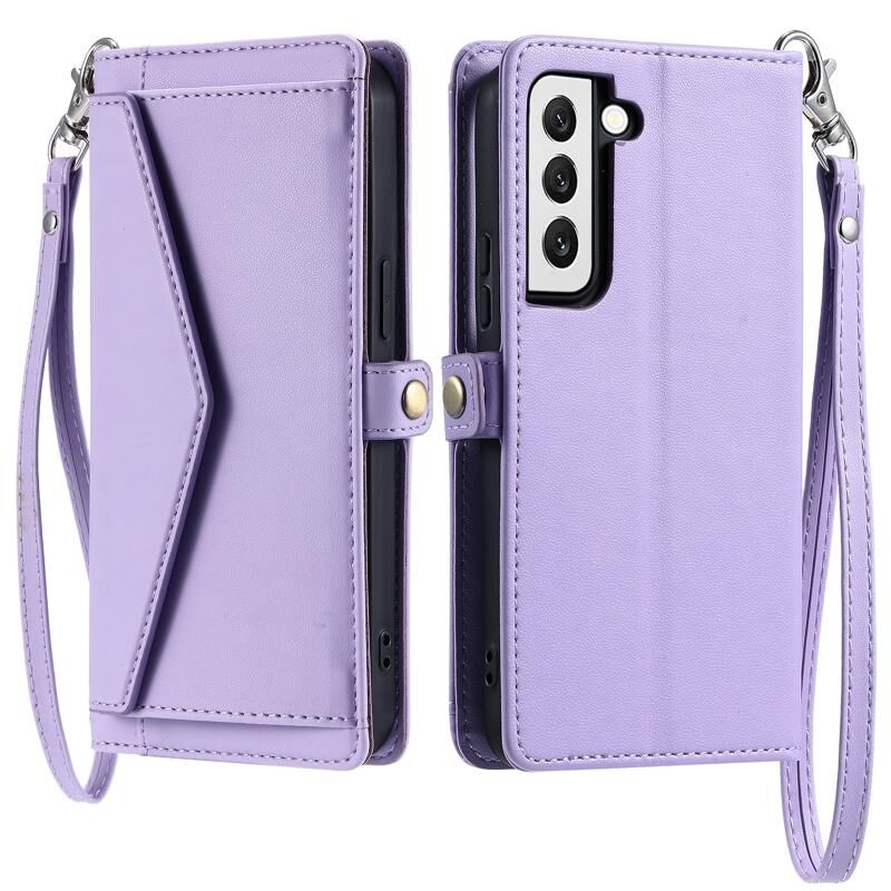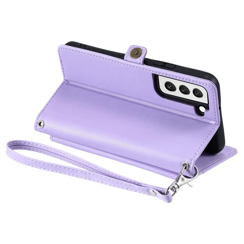 For Samsung Galaxy S22 5G Wallet Multi-card Slot Leather Phone Case with Lanyard(Purple)