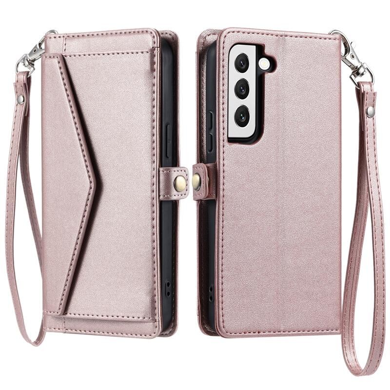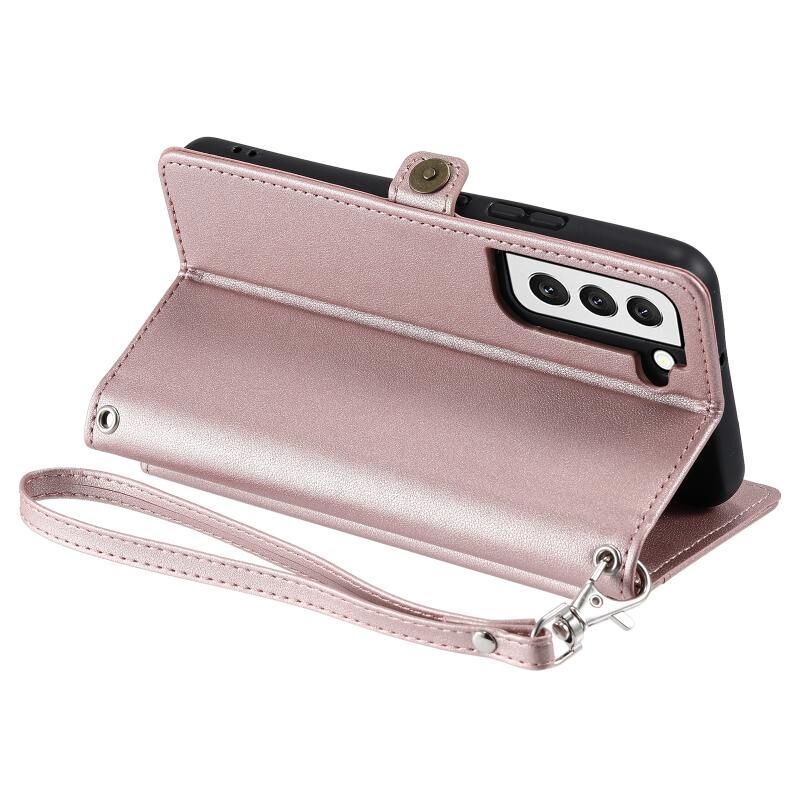 Για Samsung Galaxy S22 5G Πορτοφόλι Multi-card Slot Δερμάτινη θήκη τηλεφώνου με κορδόνι (ροζ χρυσό)