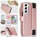 Για Samsung Galaxy S22 + 5G Wristband κάτοχος φερμουάρ πορτοφόλι RFID δερμάτινη θήκη τηλεφώνου (Rose Gold)