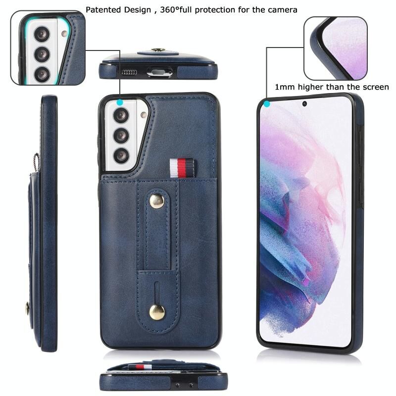 Για Samsung Galaxy S22+ 5G Wristband Kickstand πορτοφόλι δερμάτινη θήκη τηλεφώνου (μπλε)