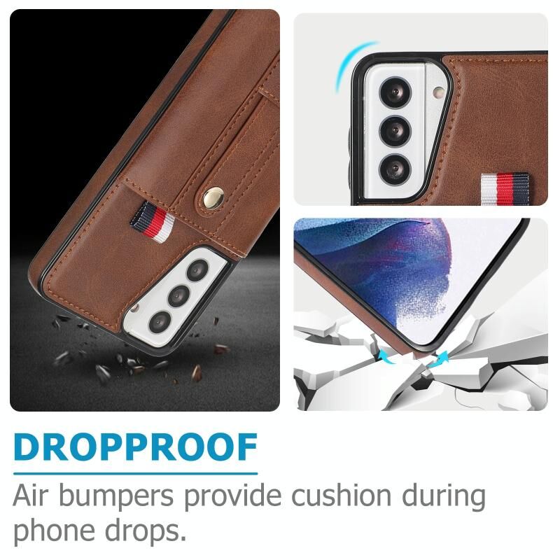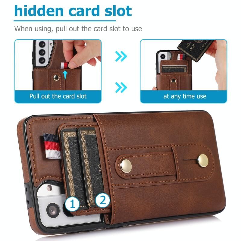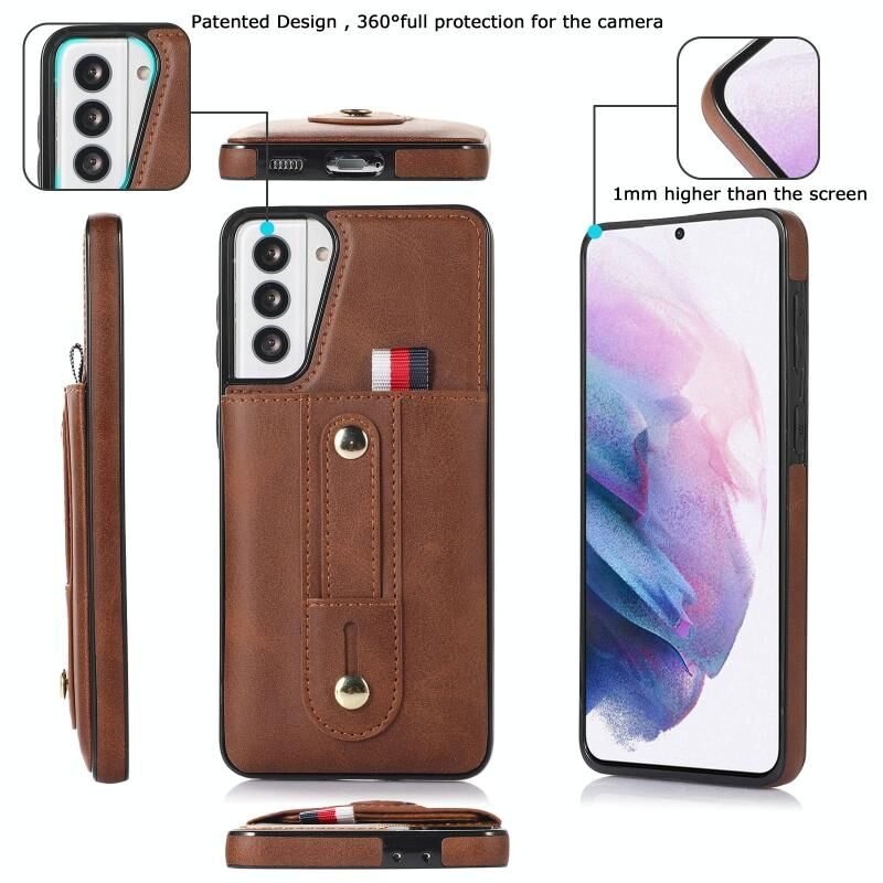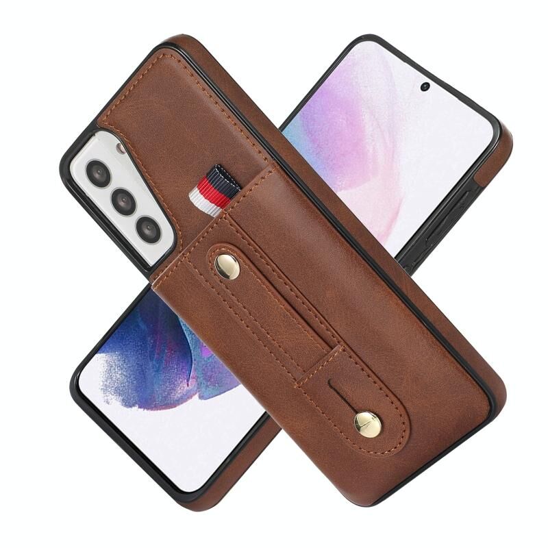 Για Samsung Galaxy S22+ 5G Wristband Kickstand πορτοφόλι δερμάτινη θήκη τηλεφώνου (καφέ)
