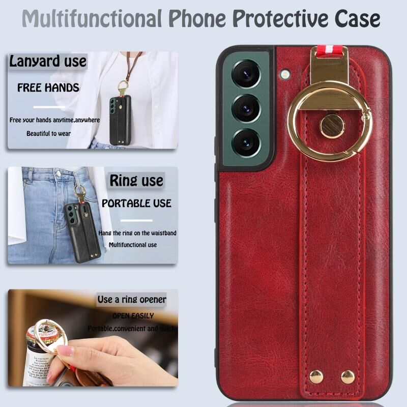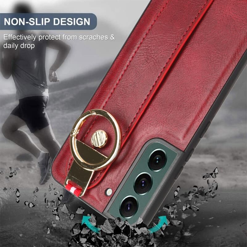 Για Samsung Galaxy S22 5G Wristband δέρμα πίσω θήκη τηλεφώνου (κόκκινο)
