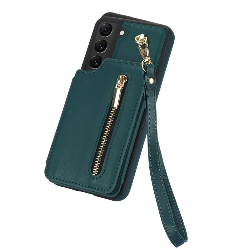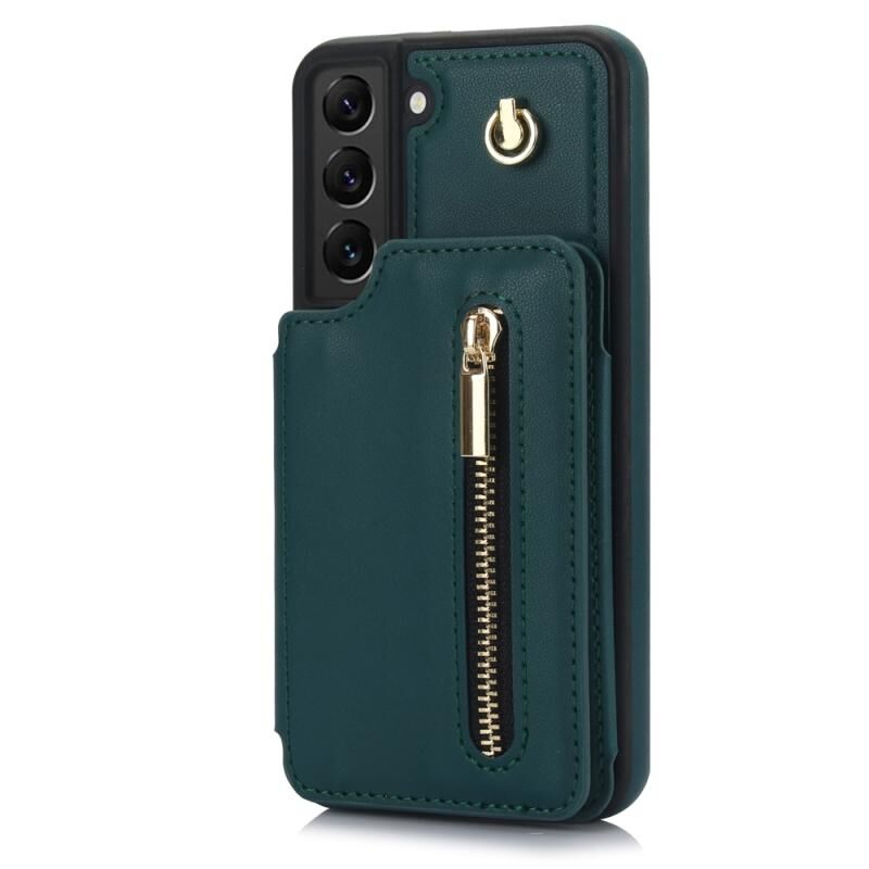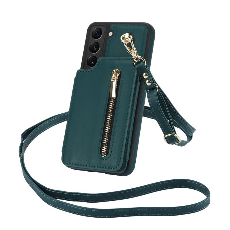 Για Samsung Galaxy S22 + 5G YM006 δέρμα αίσθηση φερμουάρ κάρτα τσάντα υπόθεση τηλεφώνου με διπλό κορδόνι (πράσινο)