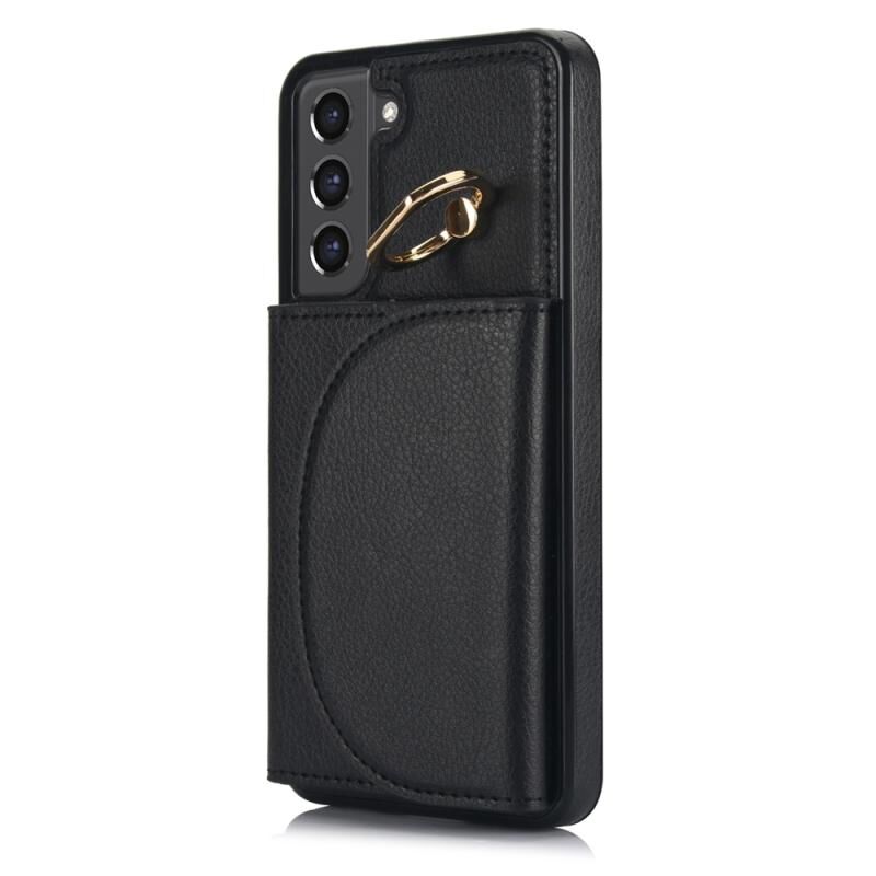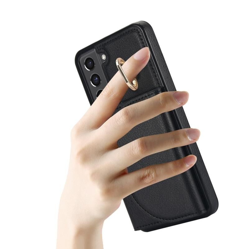 Για Samsung Galaxy S22 5G YM007 Ring κάτοχος κάρτα τσάντα τσάντα δέρμα αίσθηση υπόθεση τηλεφώνου (μαύρο)