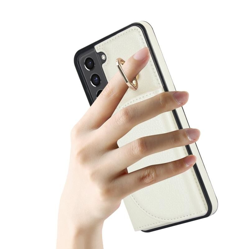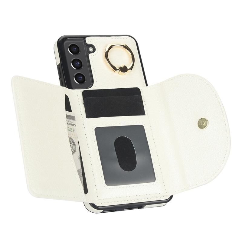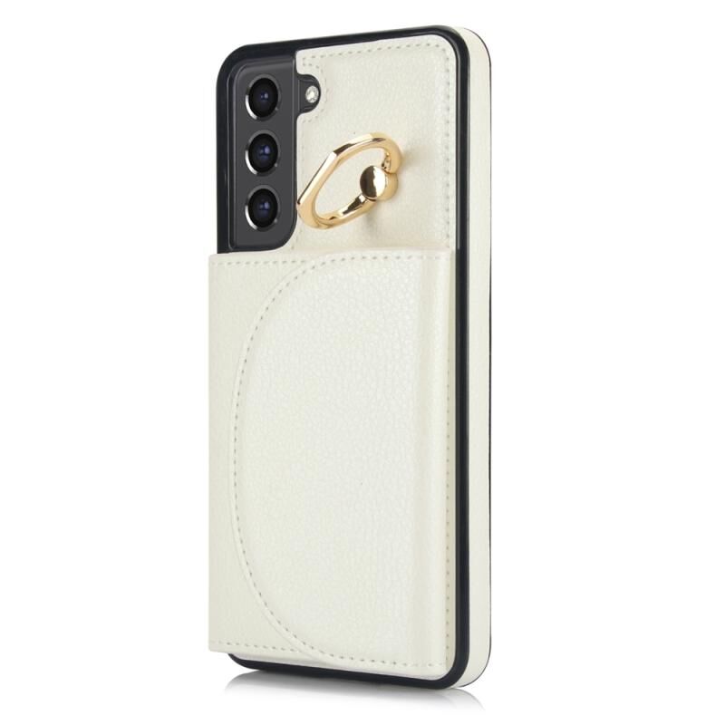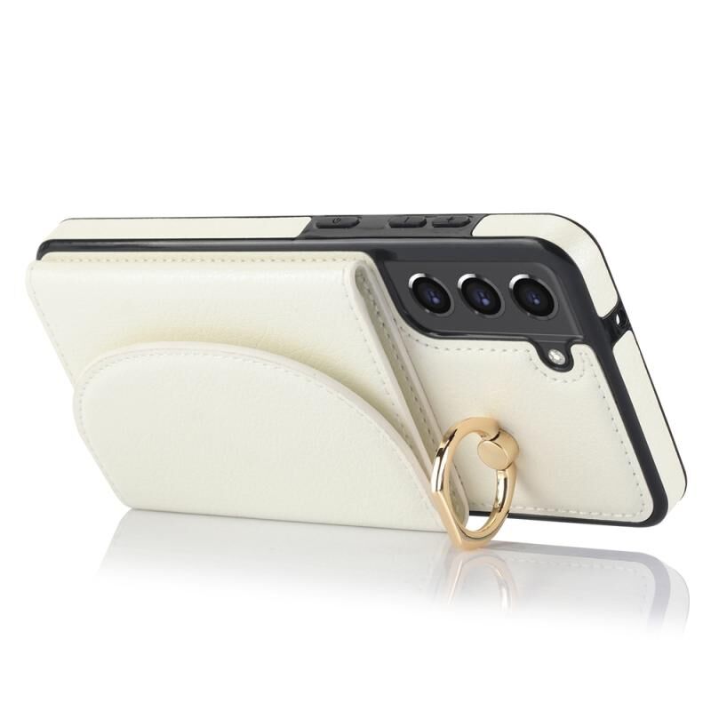 Για Samsung Galaxy S22 5G YM007 Ring κάτοχος κάρτα τσάντα τσάντα δέρμα αίσθηση υπόθεση τηλεφώνου (λευκό)