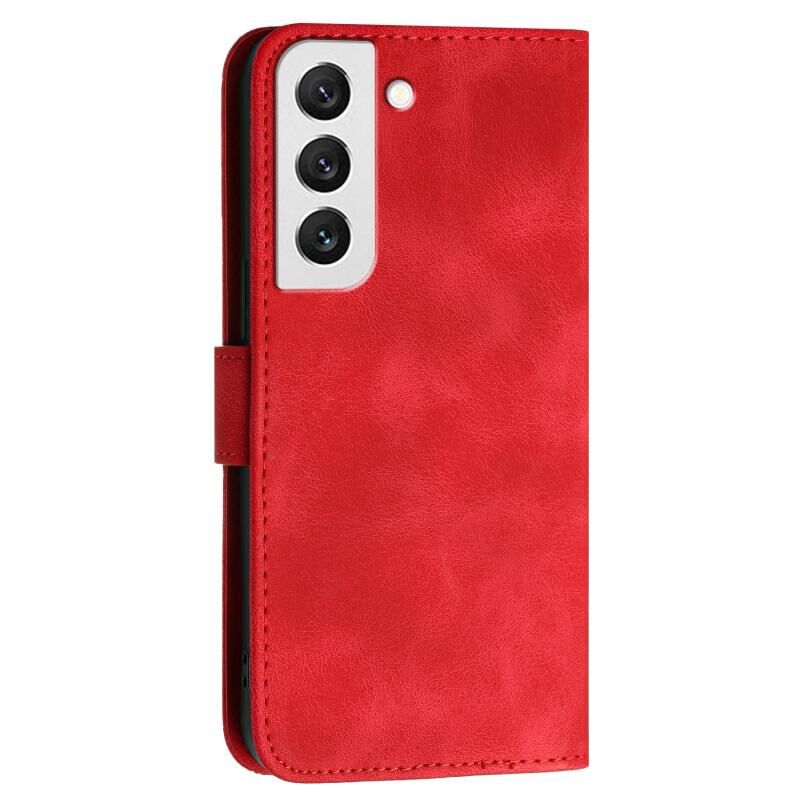 For Samsung Galaxy S22 5G YX0080 Grid Butterfly Embossed Pattern Flip Leather Phone Case with Lanyard(Red)