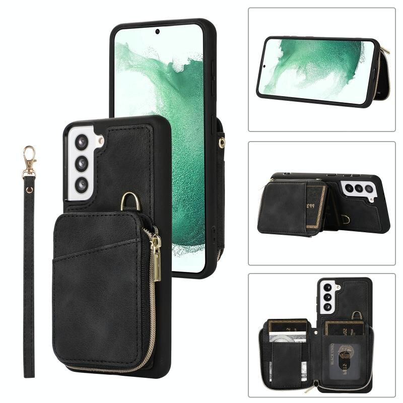 Για Samsung Galaxy S22+ 5G φερμουάρ κάρτα τσάντα πίσω κάλυμμα θήκη τηλεφώνου (μαύρο)
