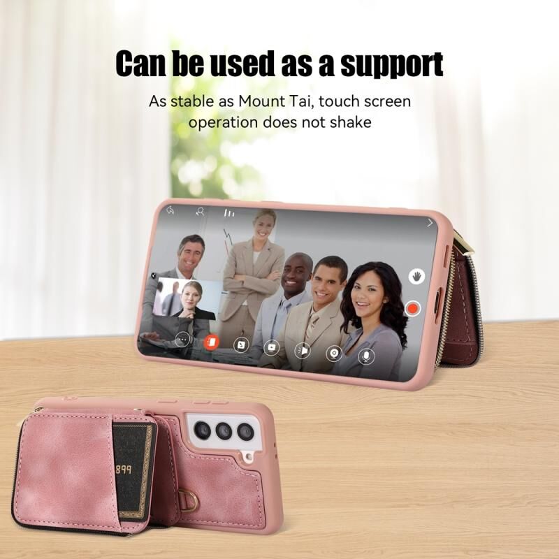 Για Samsung Galaxy S22 5G φερμουάρ κάρτα τσάντα πίσω κάλυμμα θήκη τηλεφώνου (ρόζ)