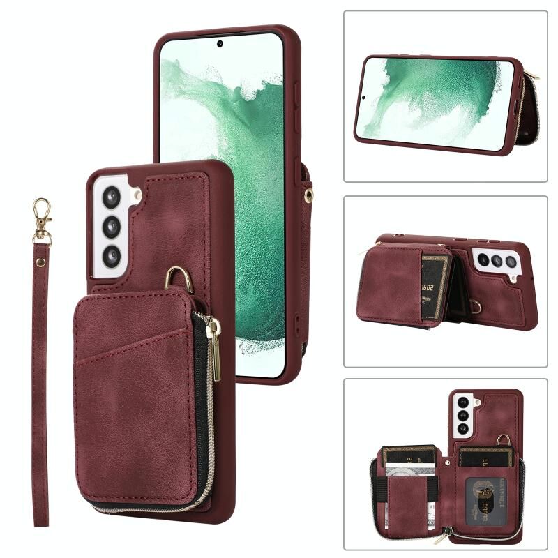 Για Samsung Galaxy S22+ 5G φερμουάρ κάρτα τσάντα πίσω κάλυμμα θήκη τηλεφώνου (κόκκινο κρασί)