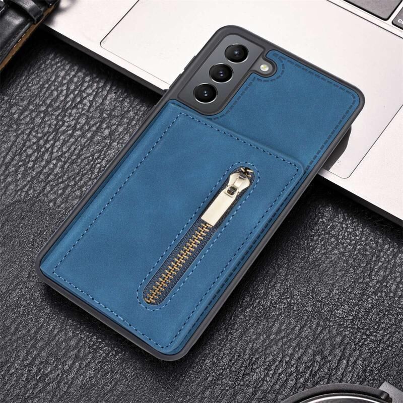 Θήκη κινητού τηλεφώνου με κάρτες και φερμουάρ για Samsung Galaxy S22+ 5G (Μπλε)