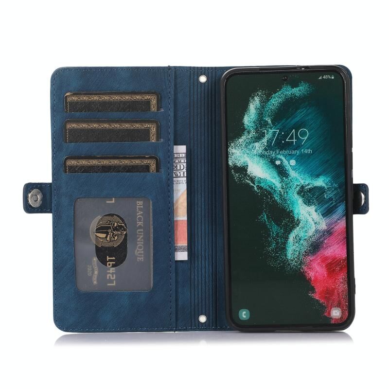 Για Samsung Galaxy S22 5G φερμουάρ κάρτα Slot πόρπη πορτοφόλι δερμάτινη θήκη τηλεφώνου (μπλε)