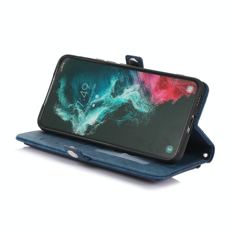 Για Samsung Galaxy S22 + 5G φερμουάρ κάρτα Slot πόρπη πορτοφόλι δερμάτινη θήκη τηλεφώνου (μπλε)