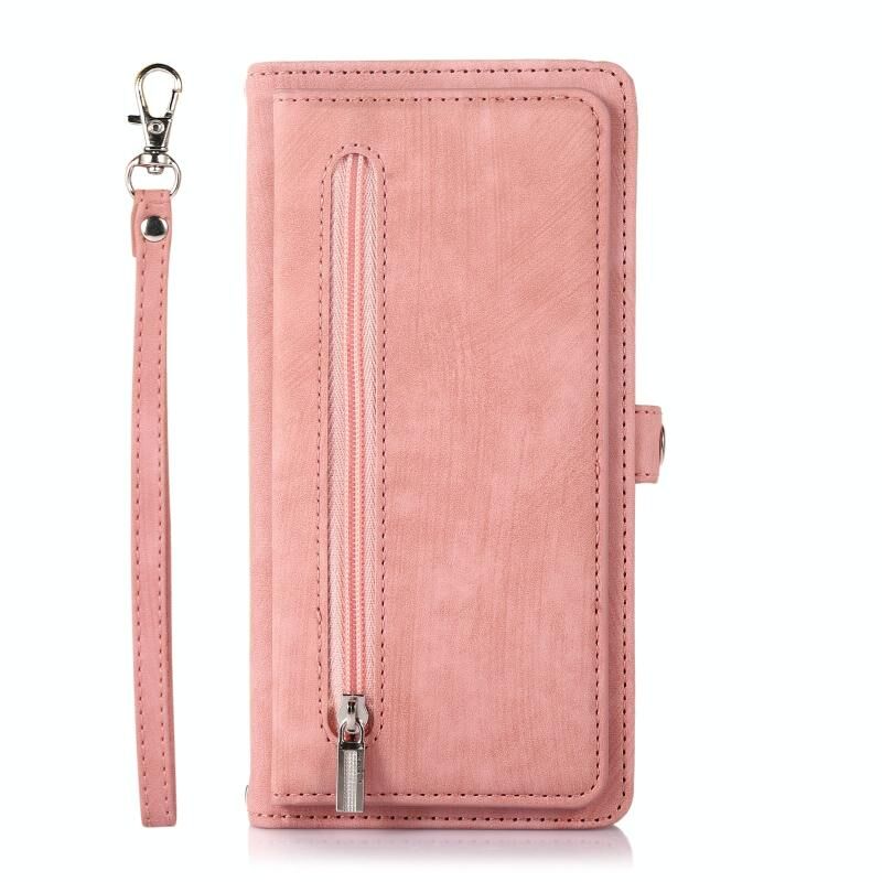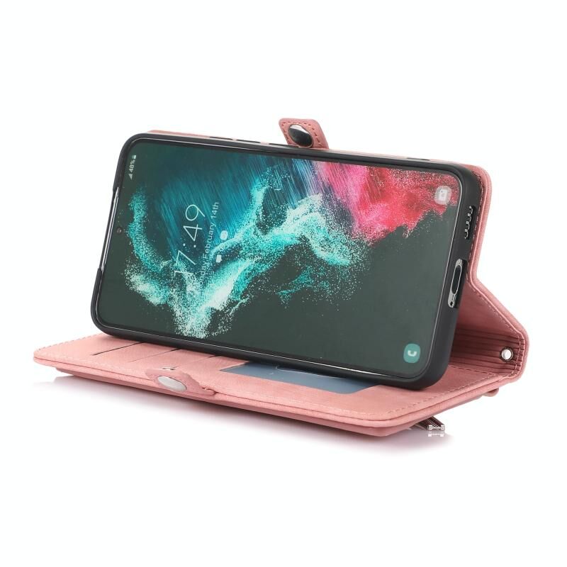 Για Samsung Galaxy S22 5G φερμουάρ κάρτα Slot πόρπη πορτοφόλι δερμάτινη θήκη τηλεφώνου (ροζ)