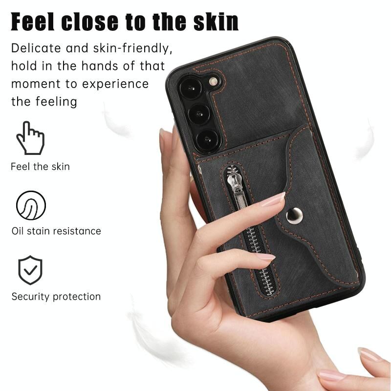 Για Samsung Galaxy S22 5G φερμουάρ RFID υποδοχές κάρτας τηλέφωνο υπόθεση με σύντομο κορδόνι (Μαύρο)