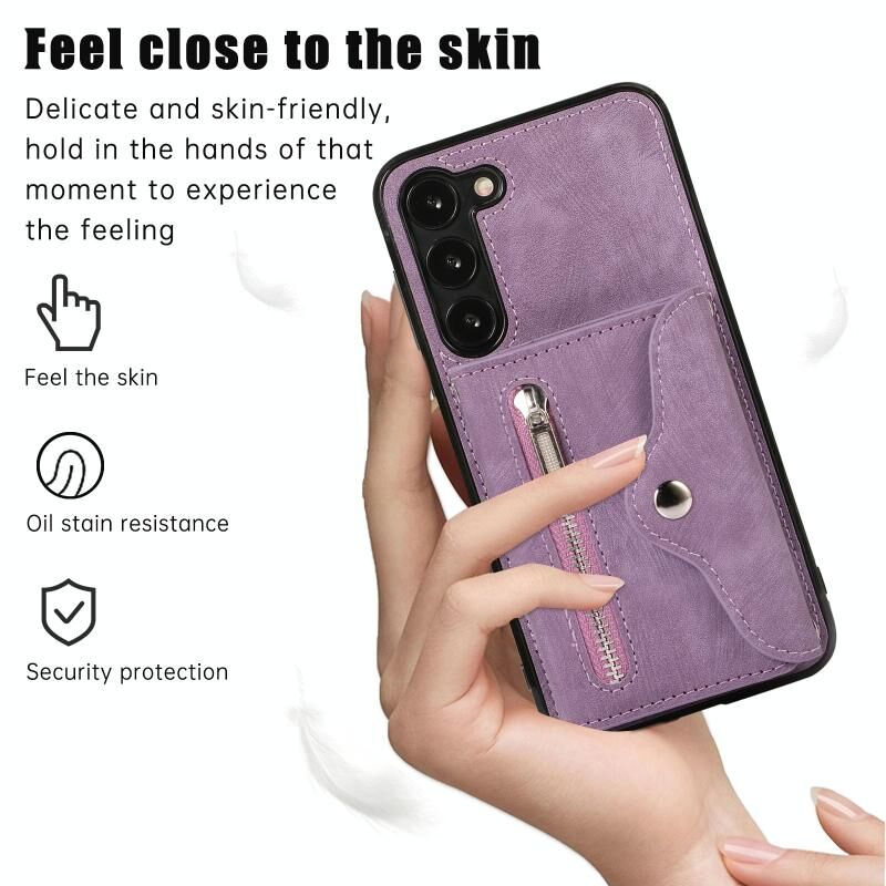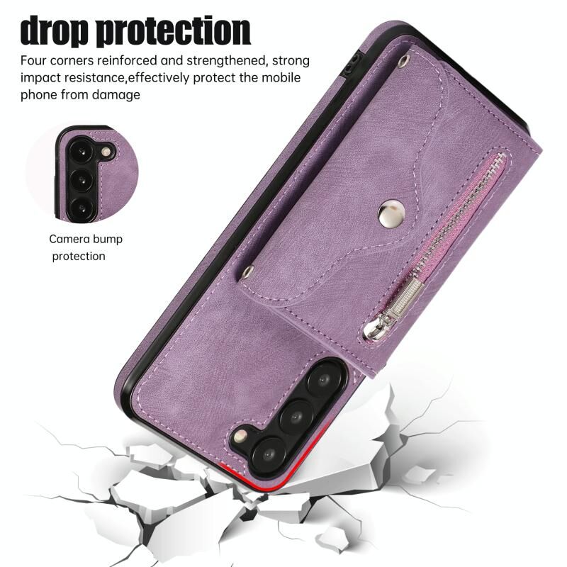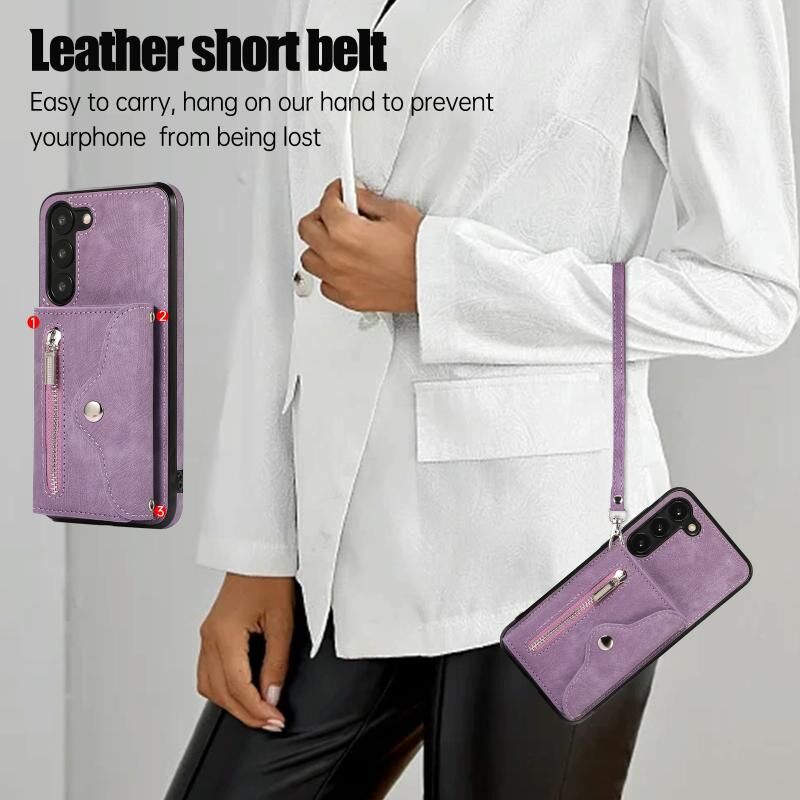 Για Samsung Galaxy S22 + 5G φερμουάρ RFID υποδοχές κάρτας υπόθεση τηλεφώνου με σύντομο κορδόνι (μωβ)