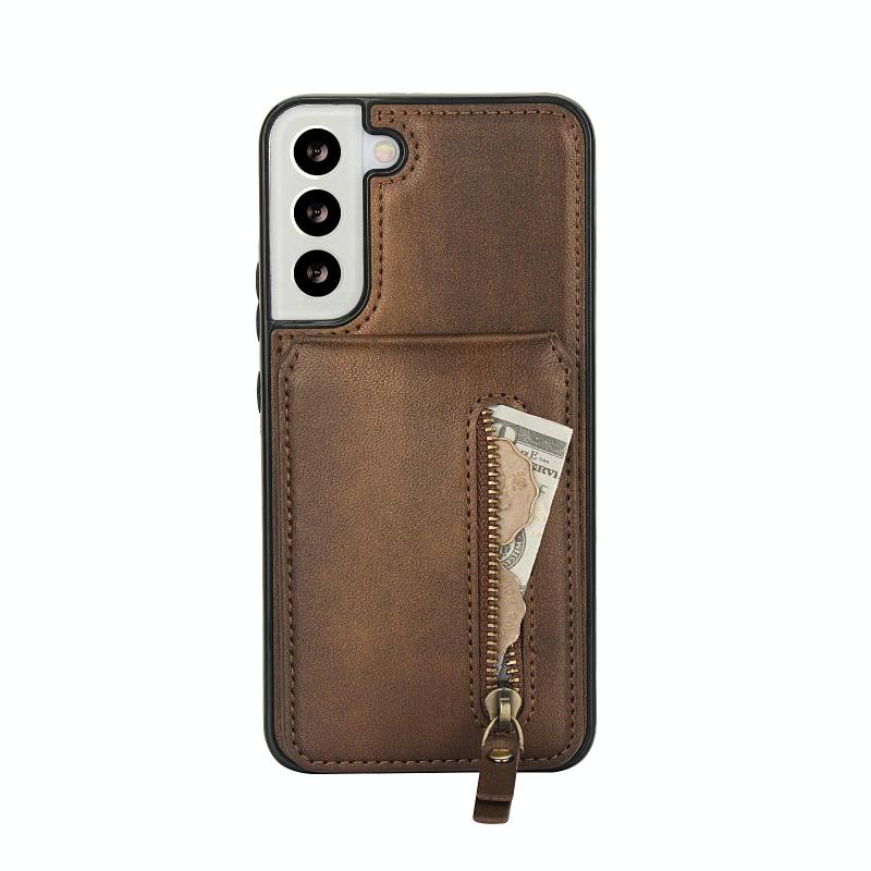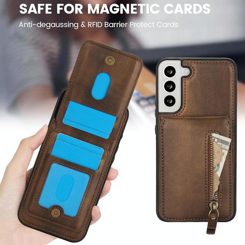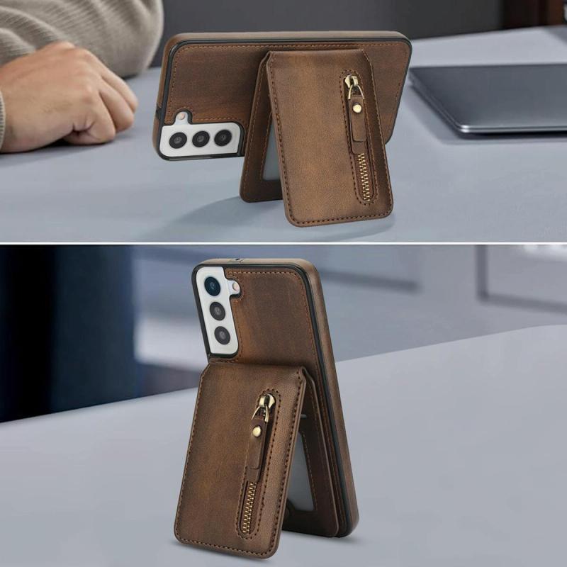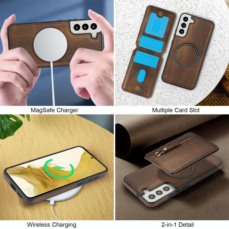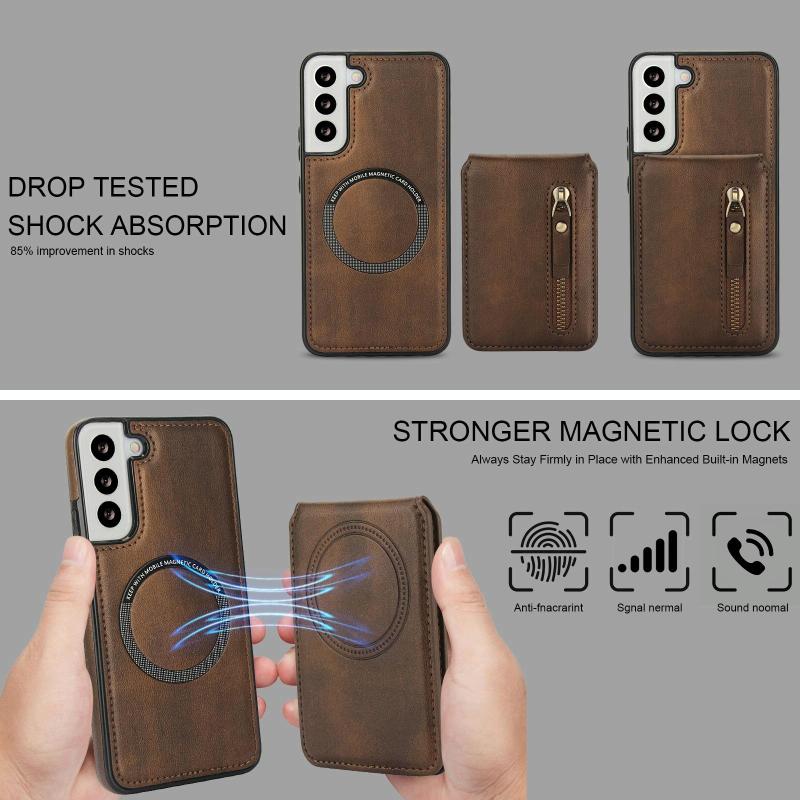 For Samsung Galaxy S22 5G Zipper Wallet Split MagSafe Leather Back Phone Case(Brown)