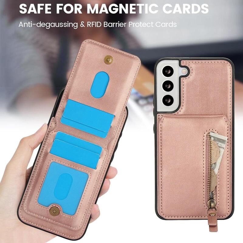 For Samsung Galaxy S22+ 5G Zipper Wallet Split MagSafe Leather Back Phone Case(Rose Gold)