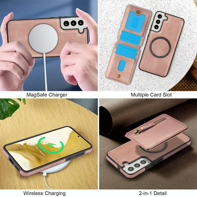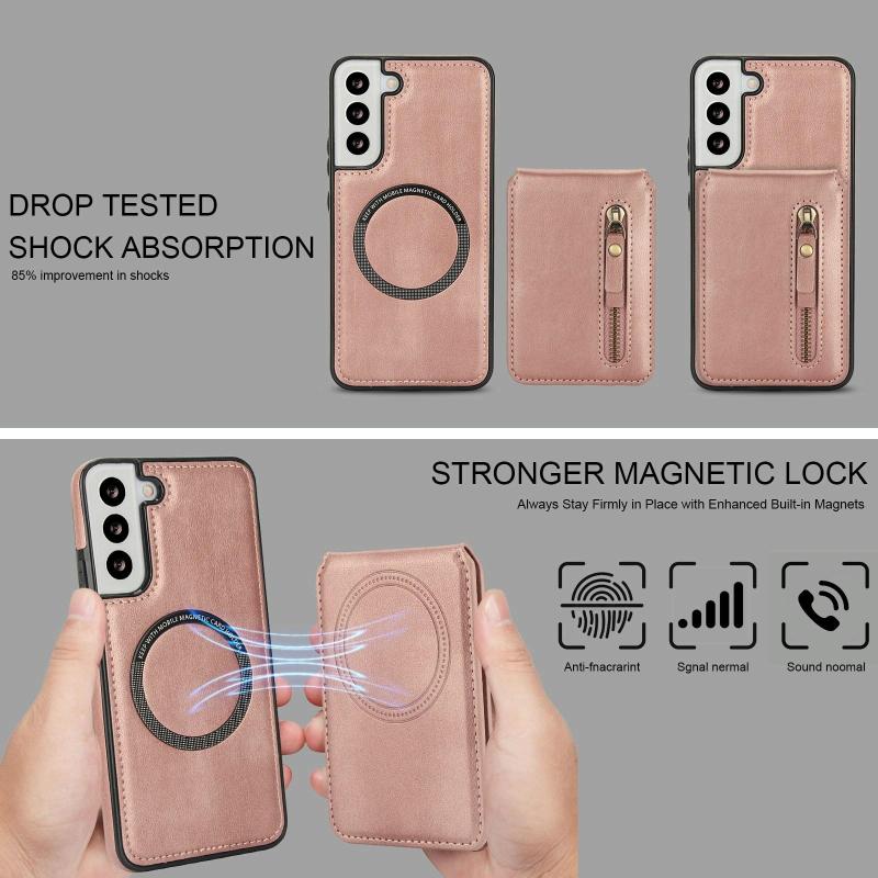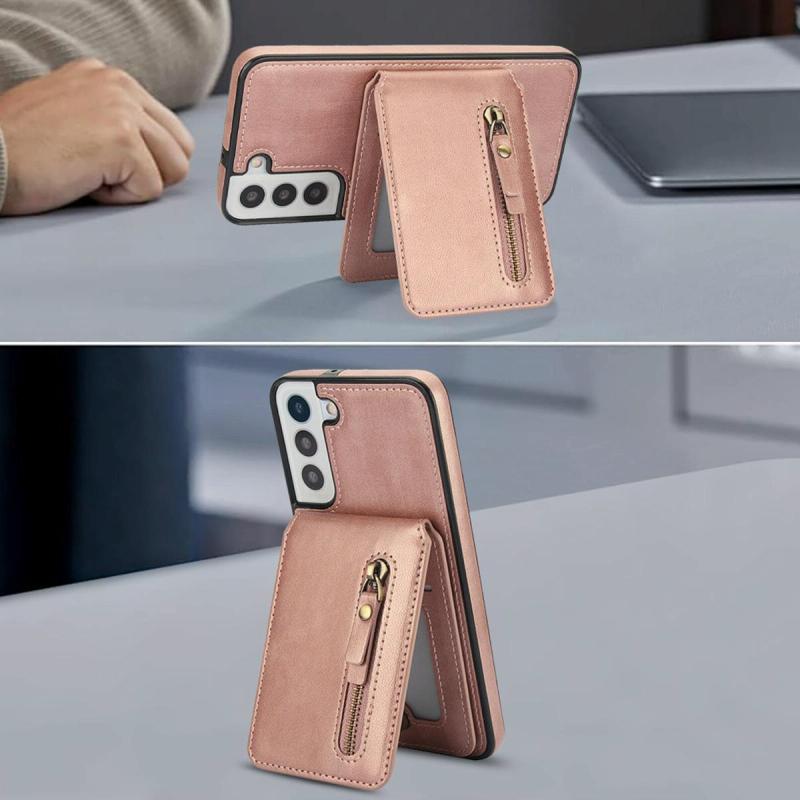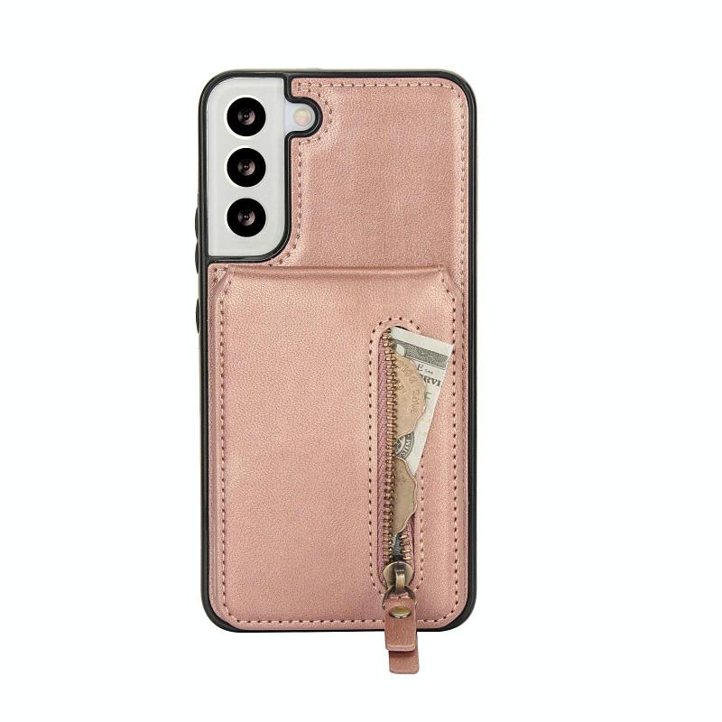 Για Samsung Galaxy S22 5G Δερμάτινη Θήκη Πορτοφολιού με MagSafe & Φερμουάρ (Ροζ Χρυσό)