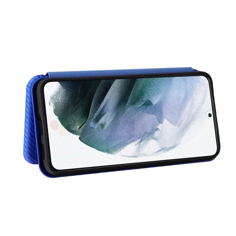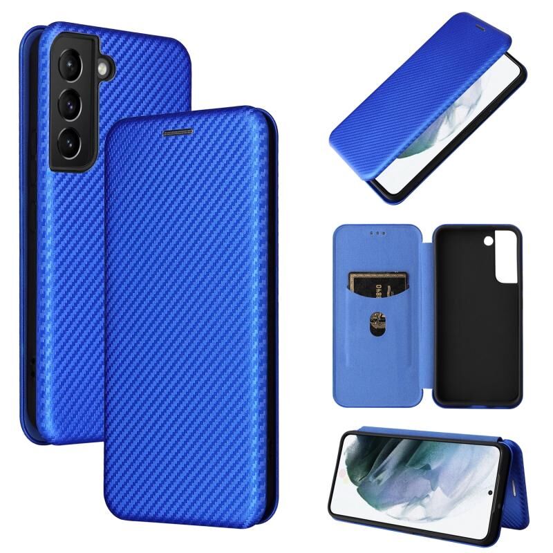 Για Samsung Galaxy S22 Carbon Fiber Texture οριζόντια Flip δέρμα τηλέφωνο υπόθεση (μπλε)