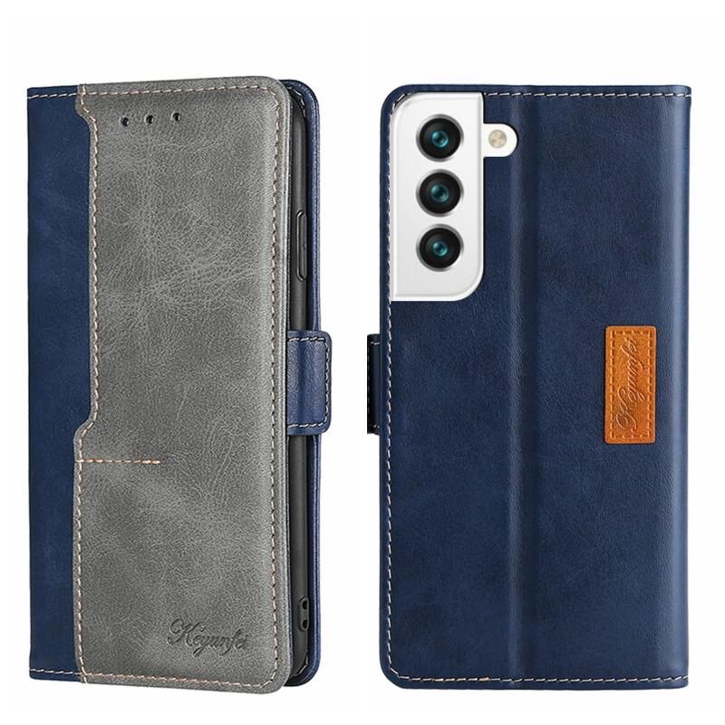 Για Samsung Galaxy S22+ Αντίθετο χρώμα πλευρά πόρπη δερμάτινη θήκη τηλεφώνου (μπλε + γκρι)