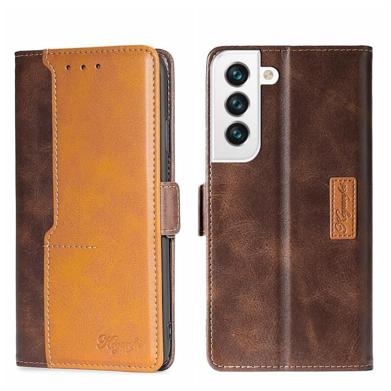 Για Samsung Galaxy S22 αντίθεση χρώμα πλευρά πόρπη δερμάτινη θήκη τηλεφώνου (σκούρο καφέ + χρυσό)